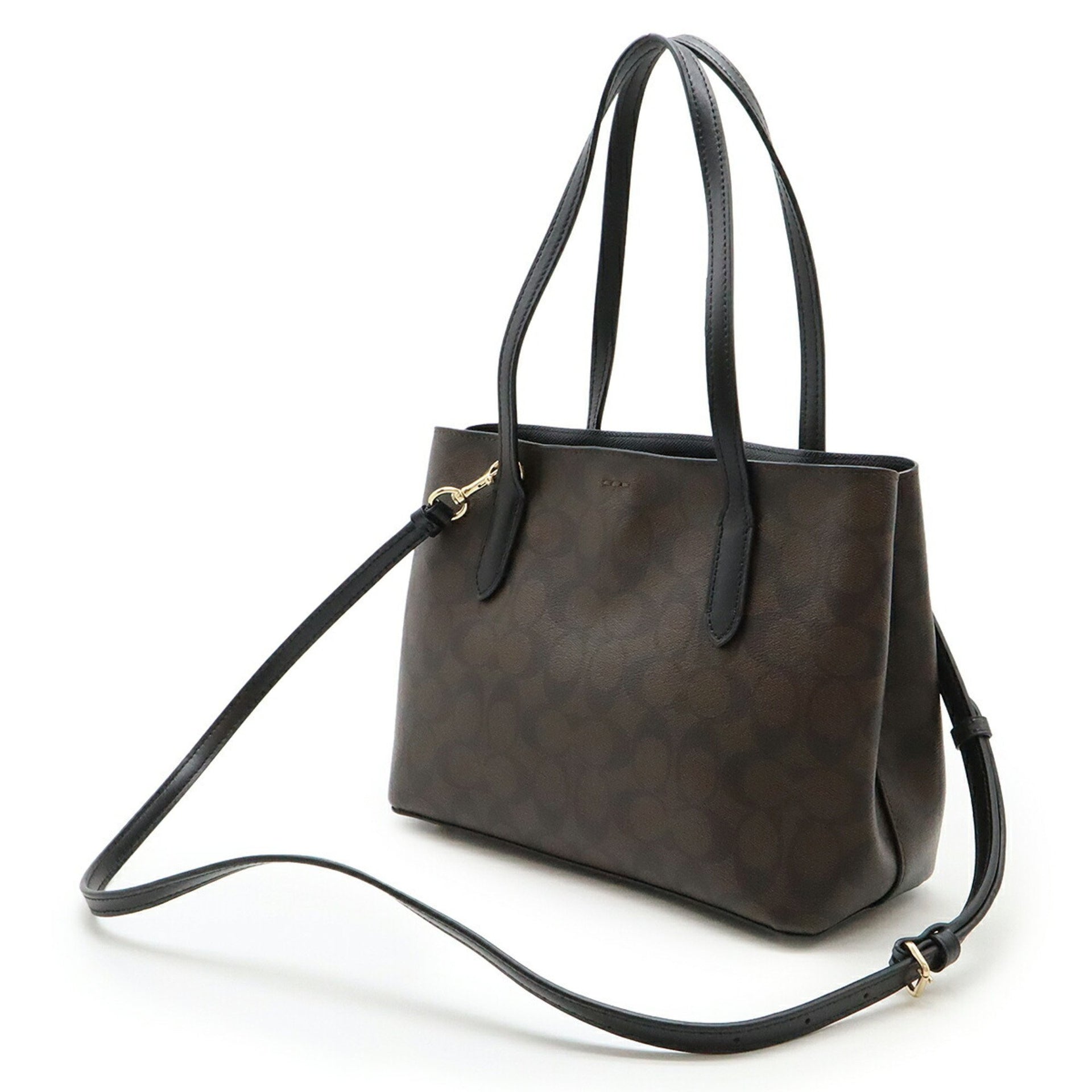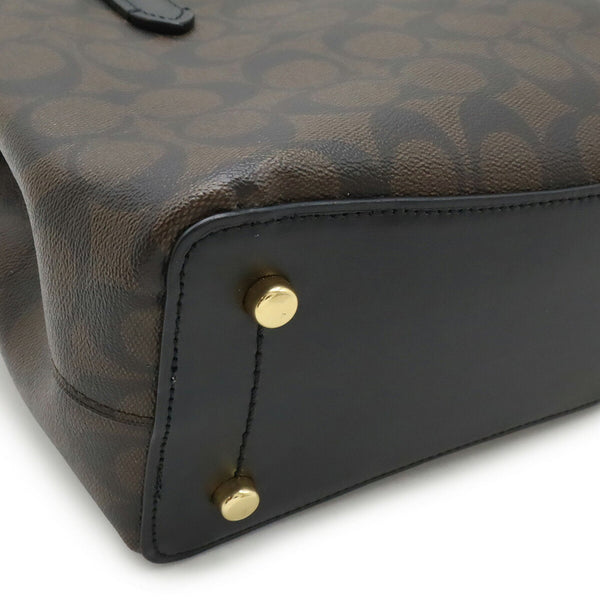 COACH Signature Tote Bag Shoulder PVC Leather Brown Black F73293