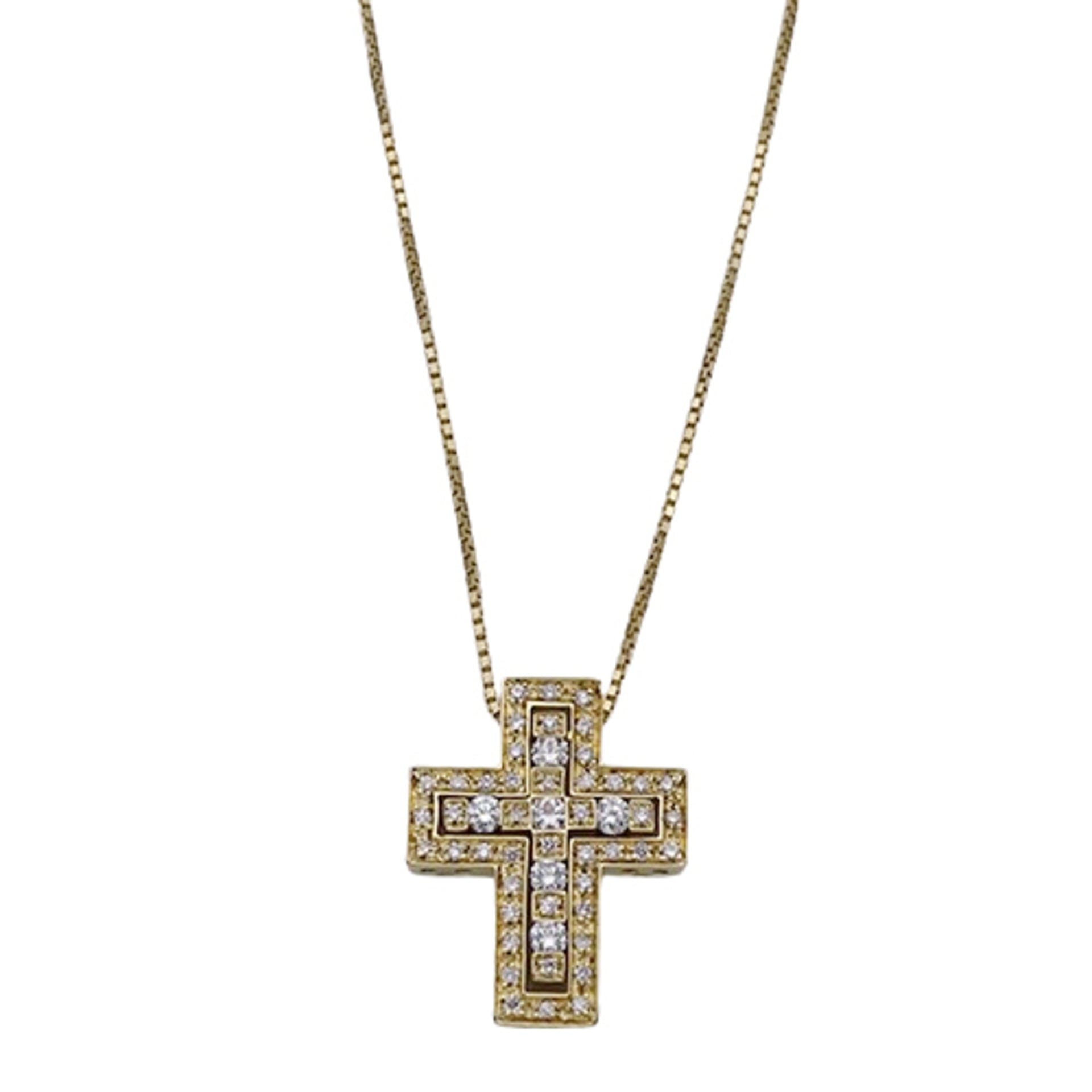 Damiani Belle Epoque 750YG Yellow Gold Cross Necklace with Diamonds, Polished, for Men and Women, Size XS