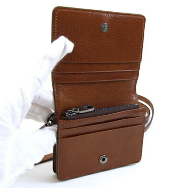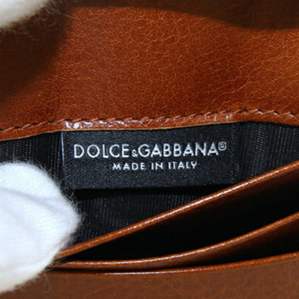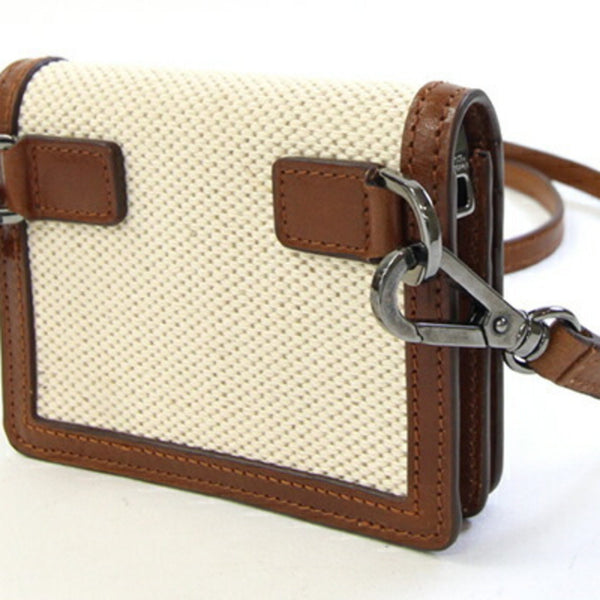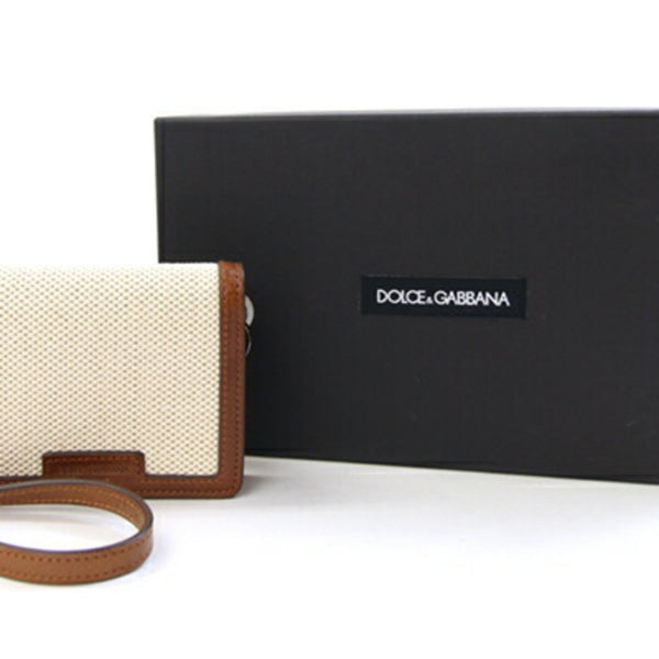 Dolce & Gabbana Coin Case BP2591 Ivory Brown Canvas Leather Card Mini Wallet with Strap Purse Women Men DOLCE GABBANA
