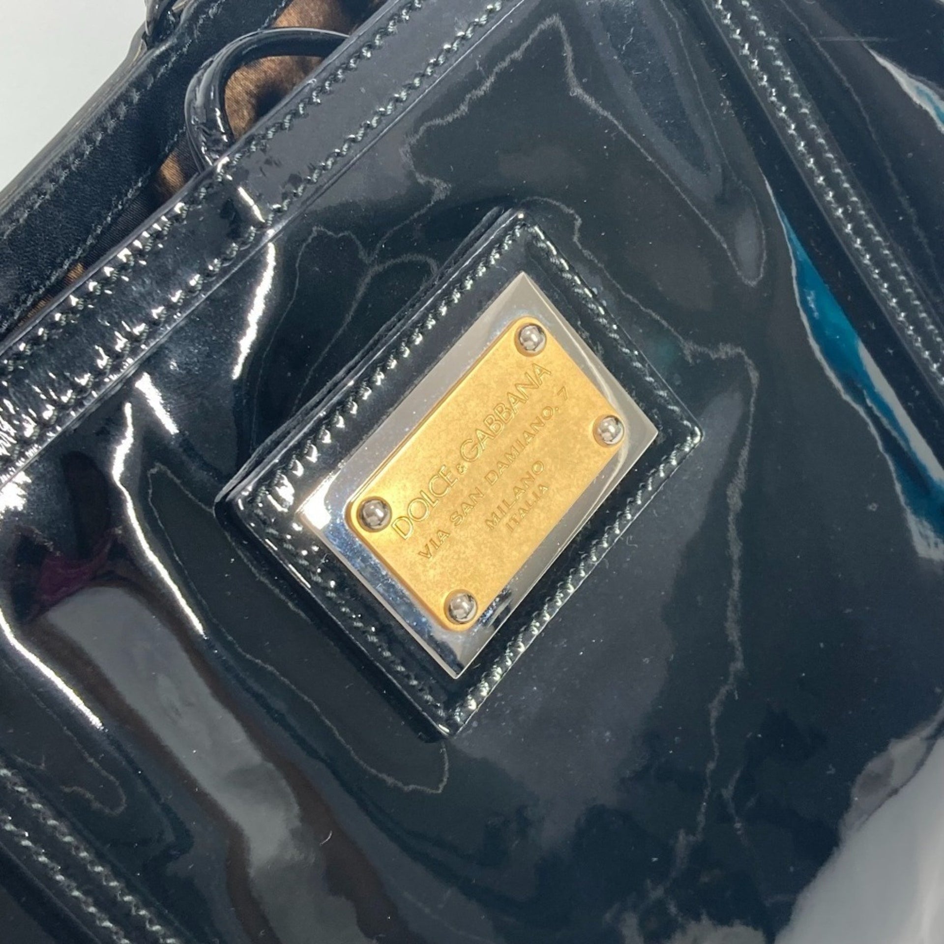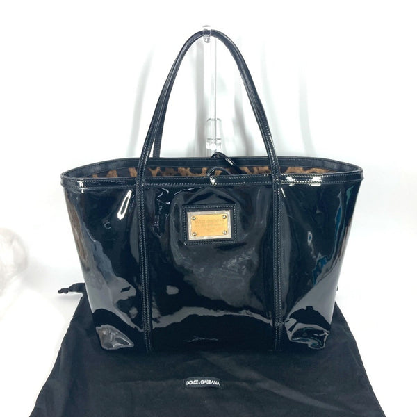 Dolce & Gabbana DOLCE&GABBANA Tassel Fringe Logo Leopard Print Shoulder Bag Tote Patent Leather Women\'s Black