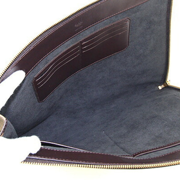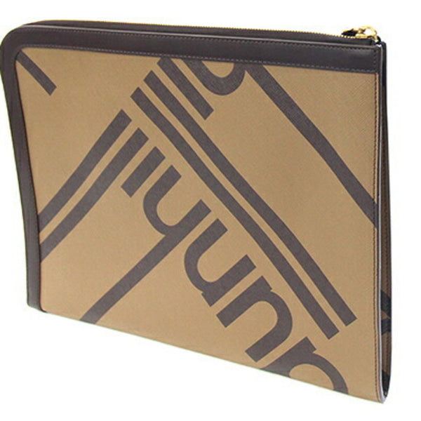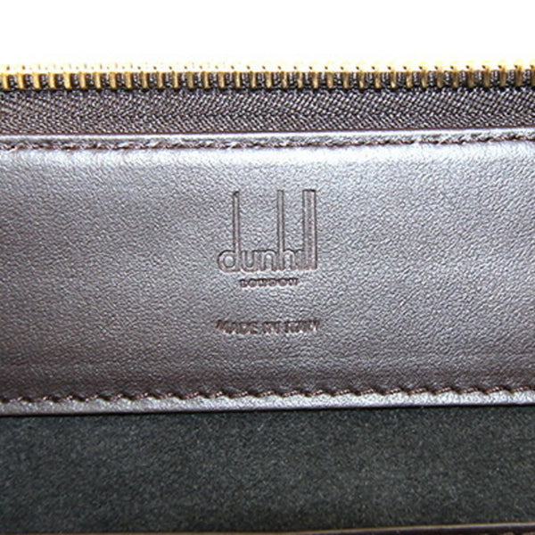 Dunhill Large Zip Folio Clutch Bag DU19R3865SC231 Camel Dark Brown PVC Leather Document Case for Men