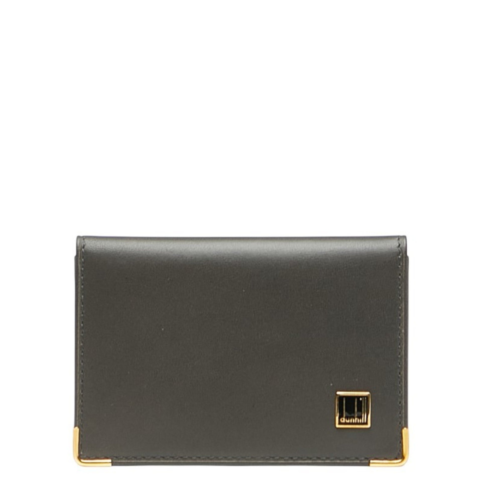 Dunhill logo business card holder, case, grey and gold leather, men\'s