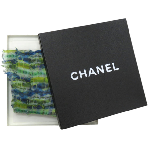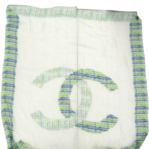 Excellent condition Chanel Coco Mark large stole, cashmere and silk, green stole 1816CHANEL