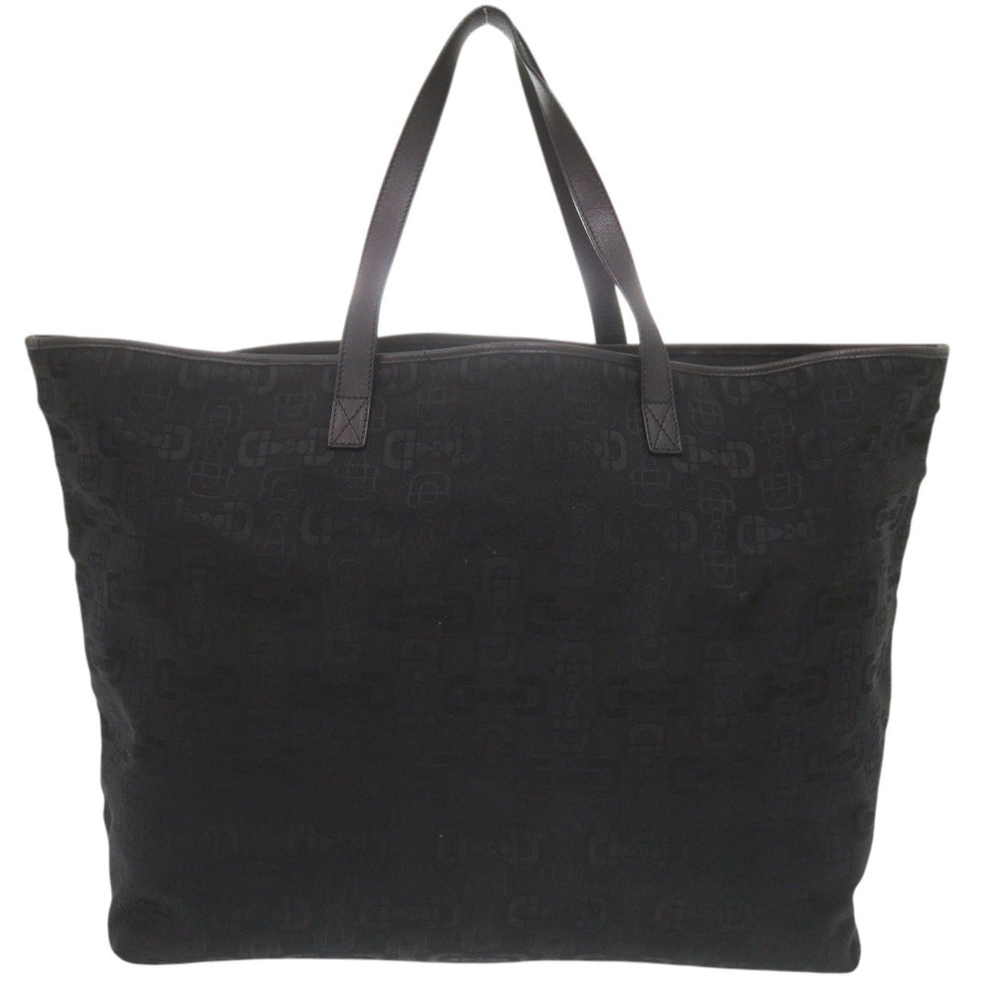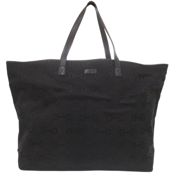Excellent condition Gucci Horsebit pattern canvas and leather black tote bag 238695 (0892)