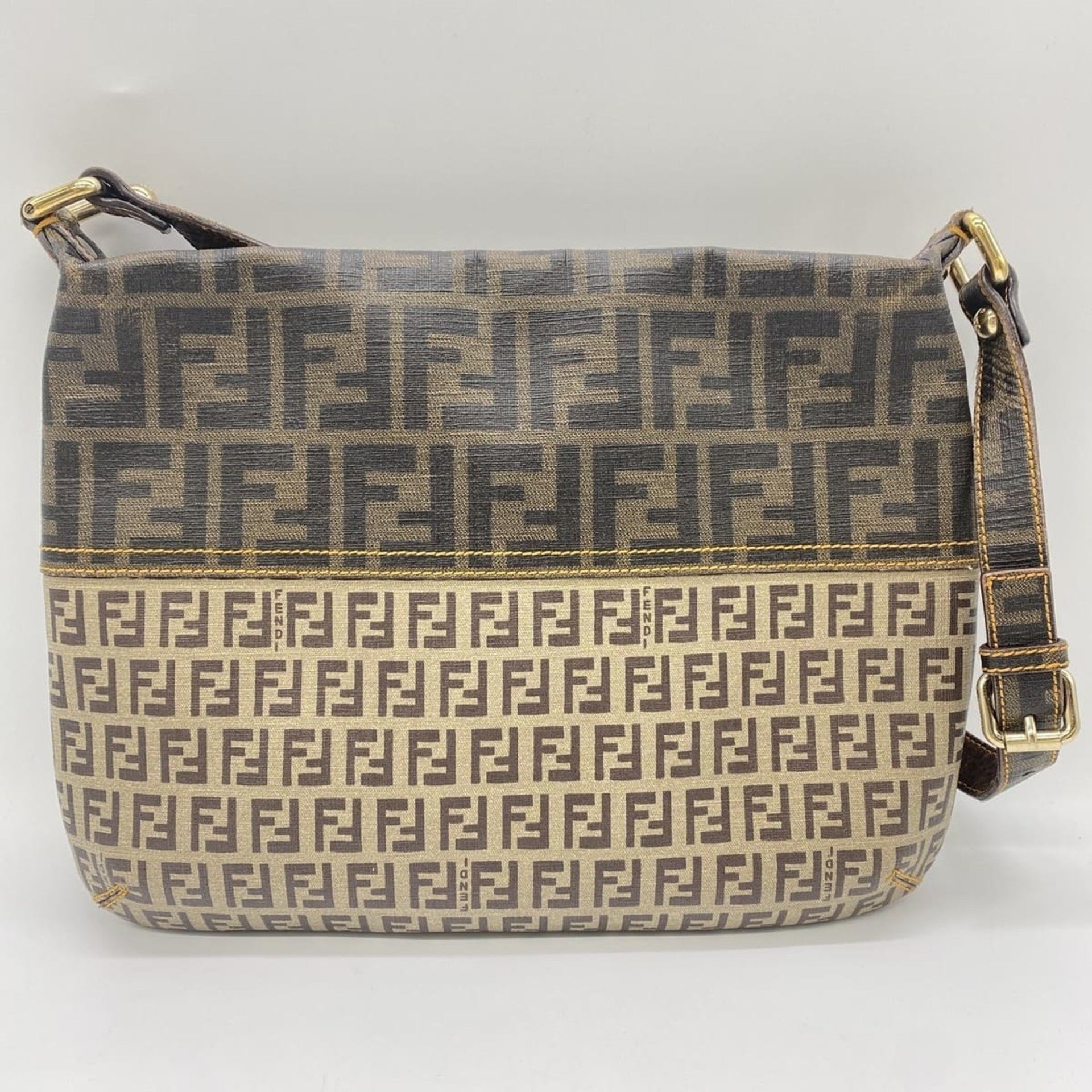 FENDI 2241-8BT118 Zucca Zucchino Shoulder Bag in Beige and Brown for Men Women