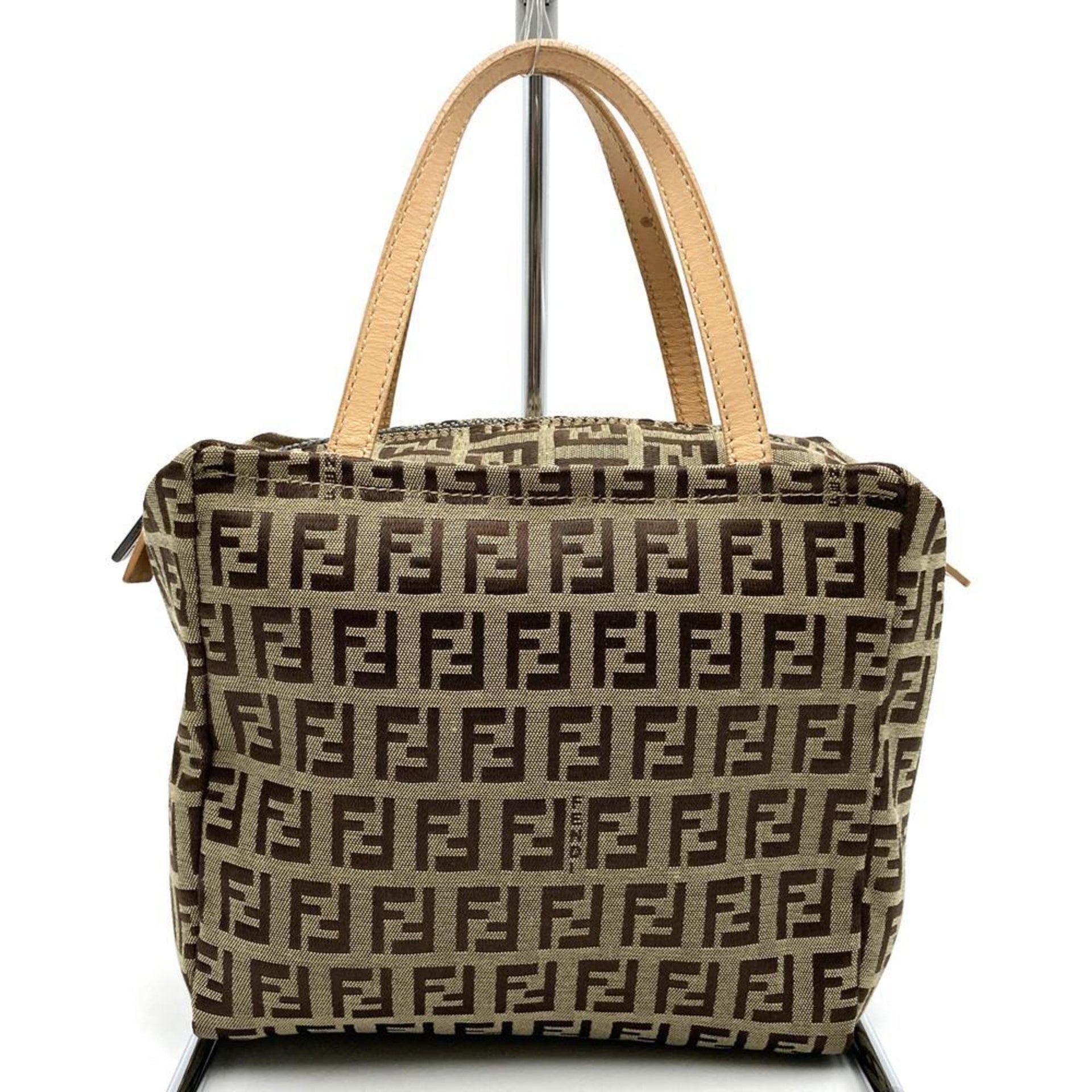 FENDI 2415 8N000 028 Handbag Pouch Zucchino Canvas Leather Beige Women\'s Men\'s