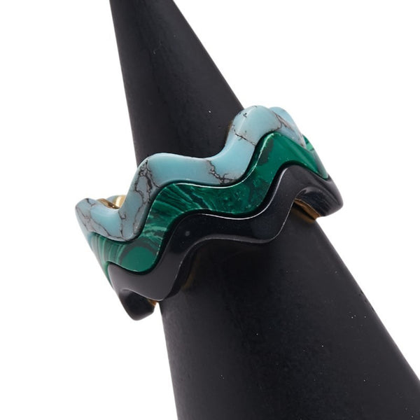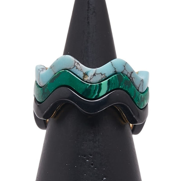Fendi 3-piece ring set, size S, gold, green, black, and light blue plated, women\'s, FENDI