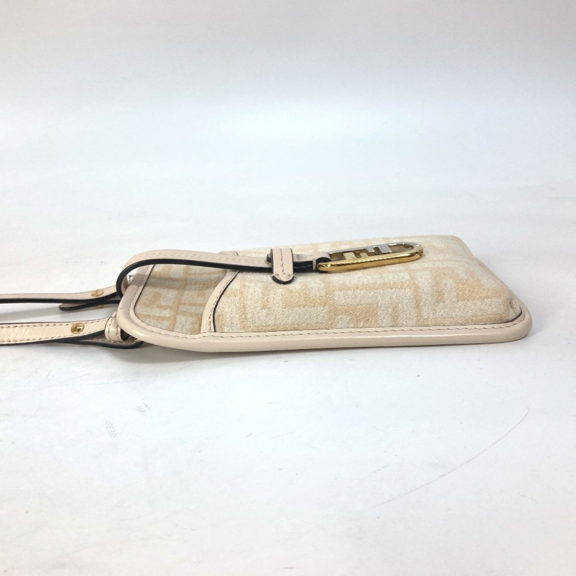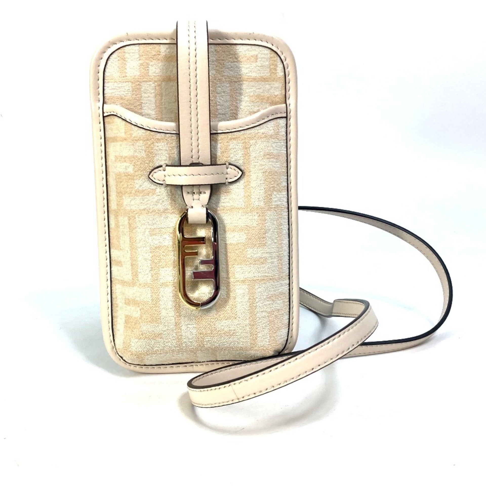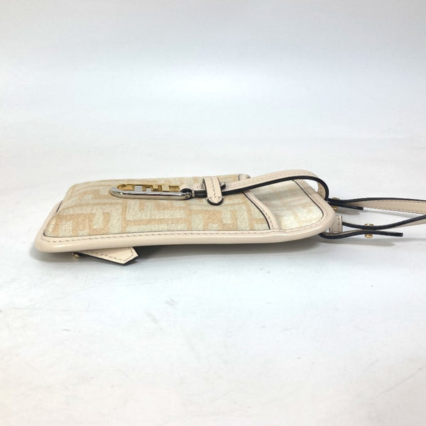 FENDI 7AS131 Zucca Logo Phone Case, Pouch, Orlock Shoulder Bag, Viscose/Leather, Beige, Women\'s