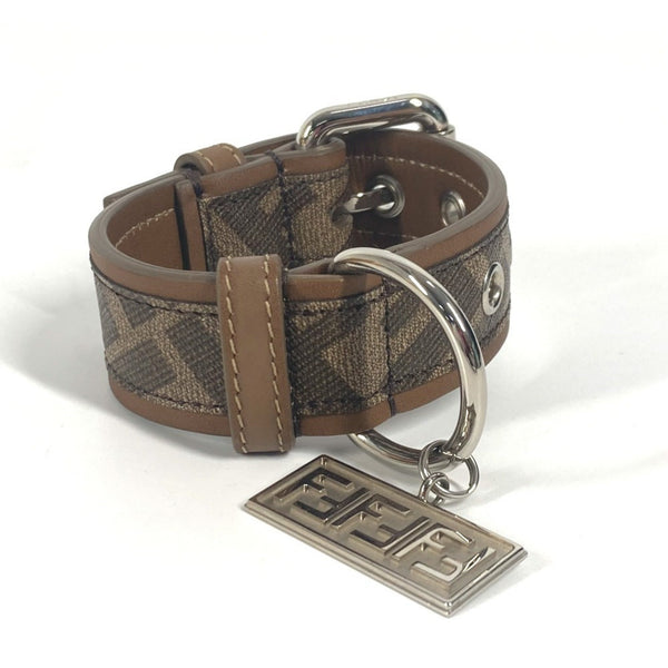 FENDI 8AC016 Zucca Dog Collar Pet Cat Leather Men Women Brown