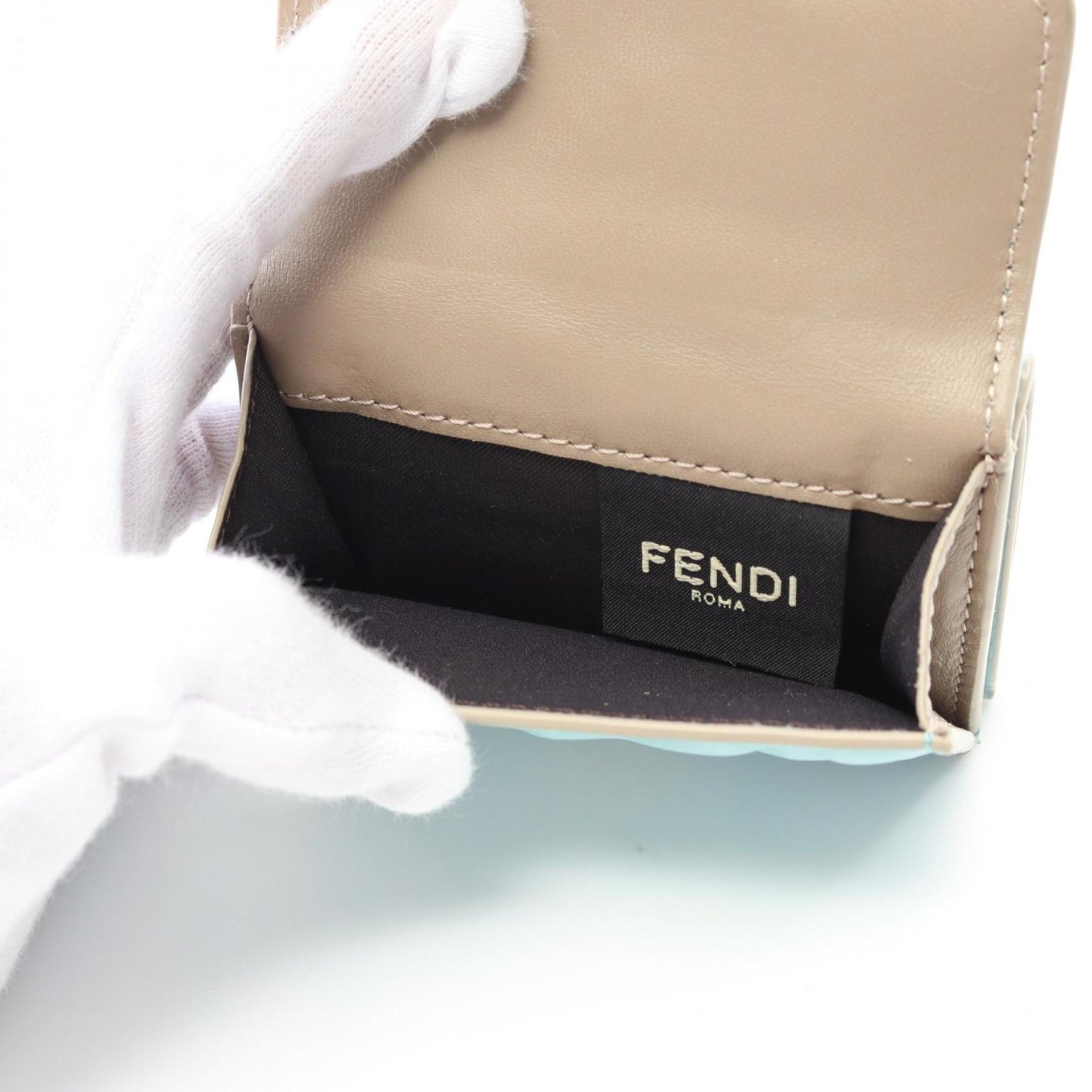 FENDI Baguette Tri-fold Wallet Leather Women\'s Blue 8M0395AT00F1PQI