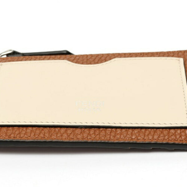 FENDI Coin Card Holder Case 8M0489 Leather Brown Ivory S-158720