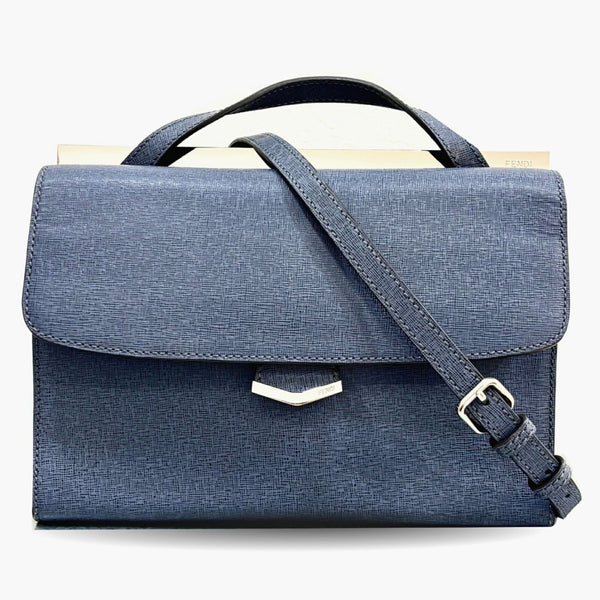 FENDI Demi Jour Shoulder Bag Handbag Leather Navy Ladies