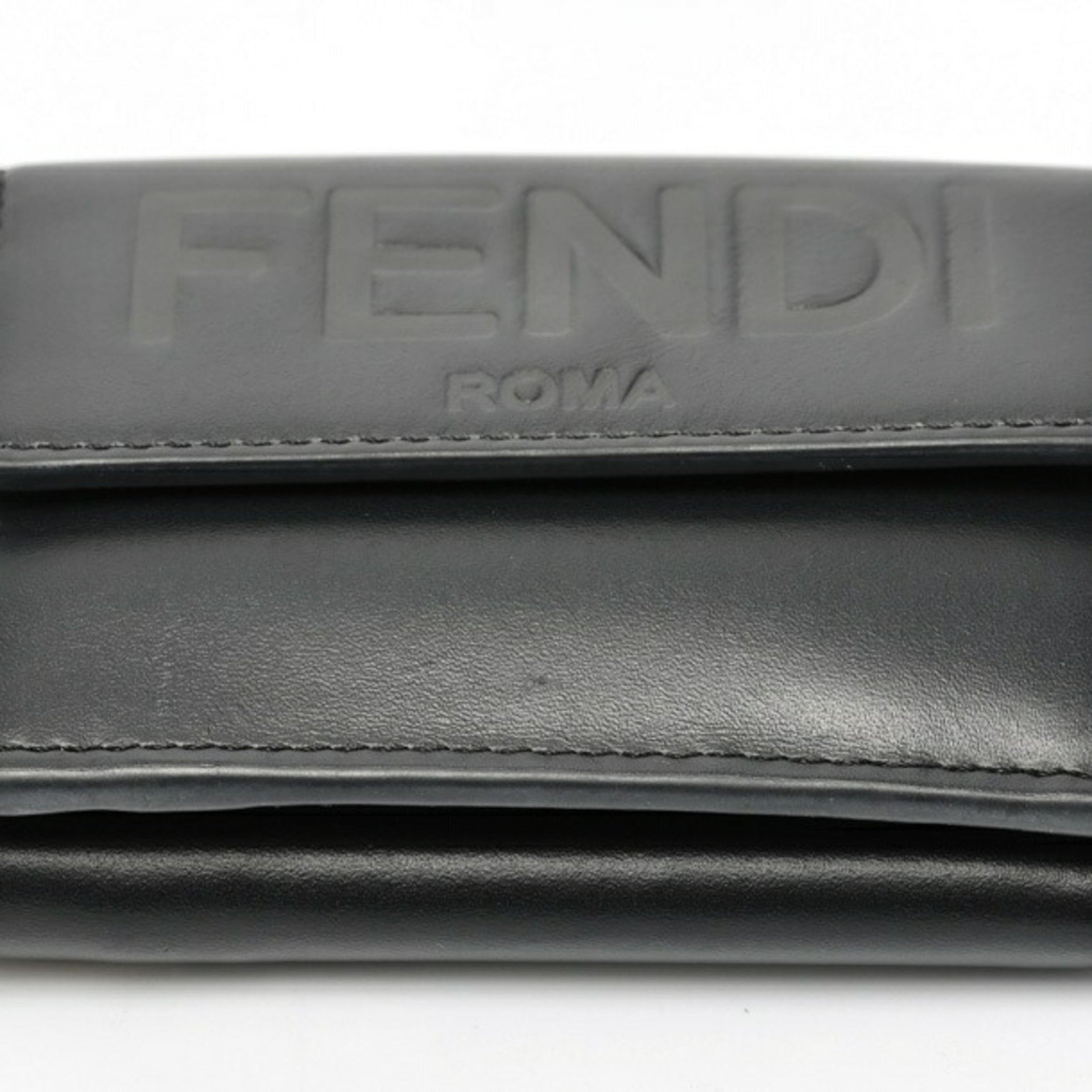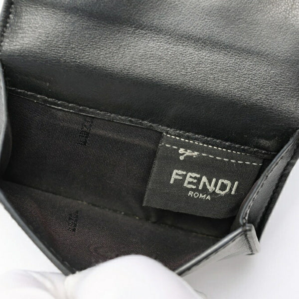 FENDI Embossed Tri-fold Compact Wallet 8M0395 Leather Black S-158515