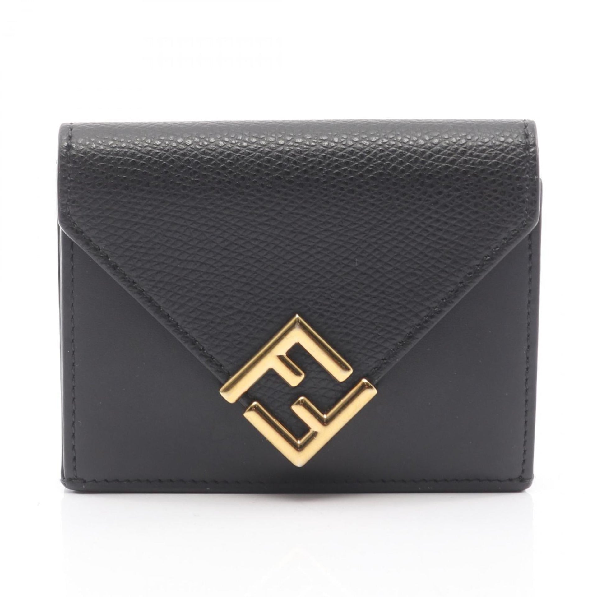 Fendi FF Diamond Tri-fold Wallet, Leather, Women\'s, Black, 8M0480