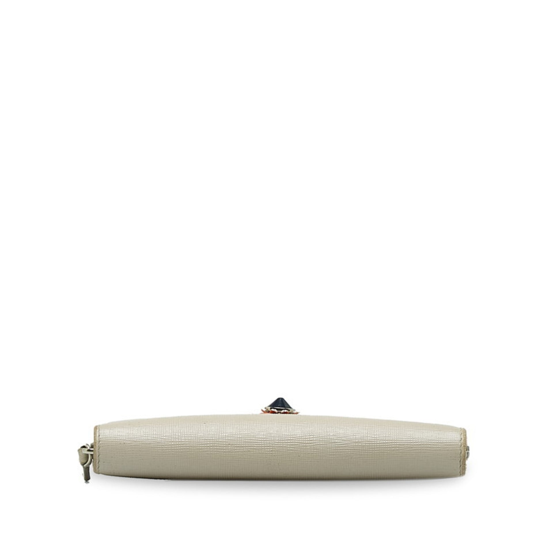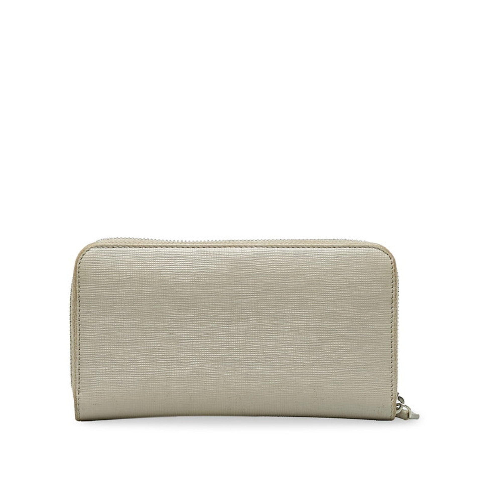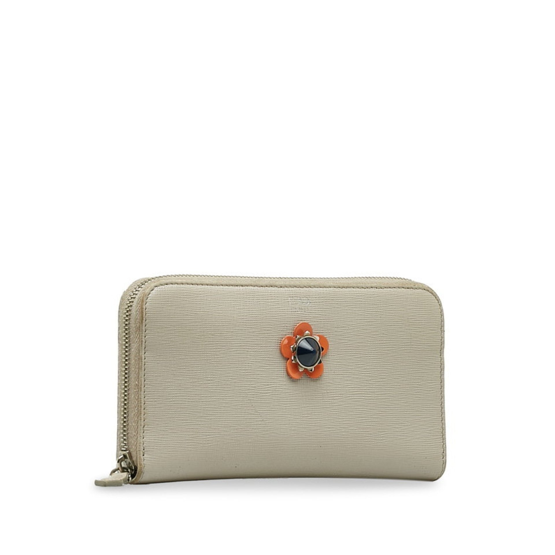 FENDI Flower Round Long Wallet 8M0299 Beige Leather Women\'s