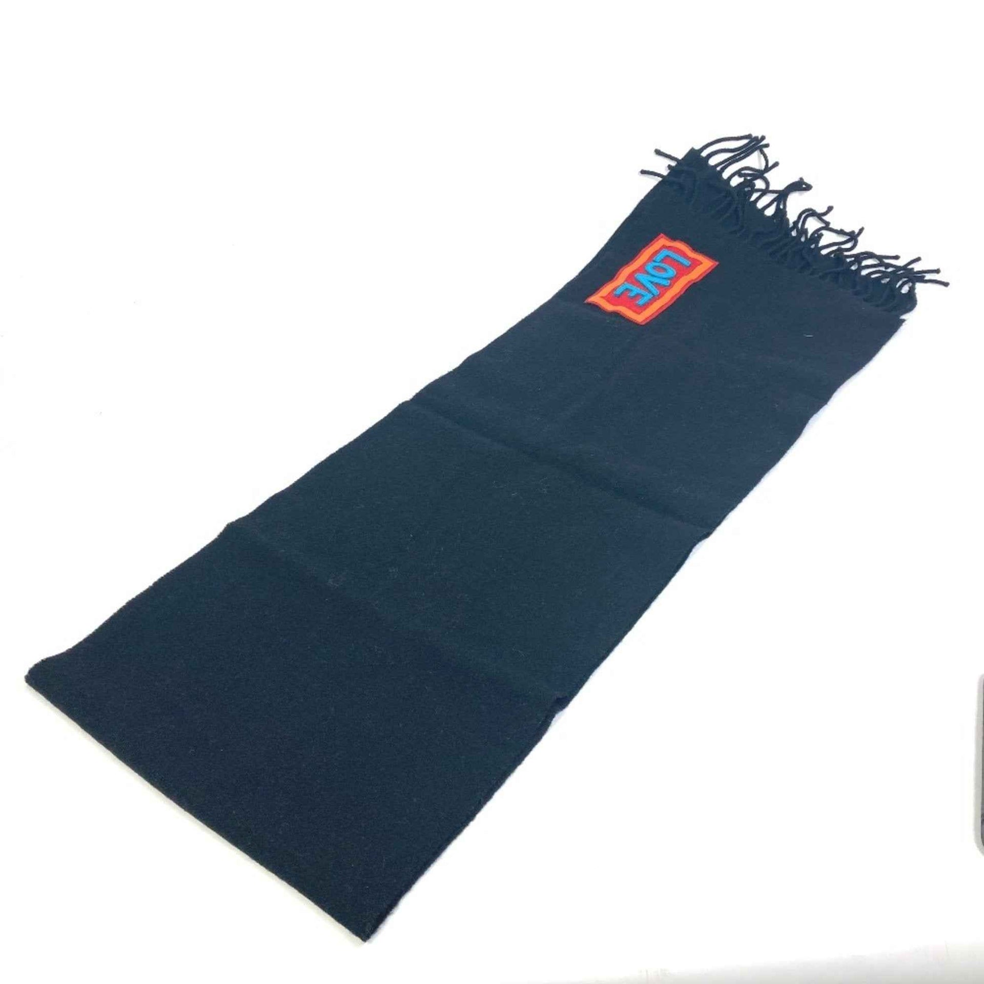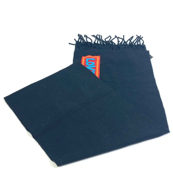 FENDI FXS124 Apparel Scarf/Muffler with Logo Patch and Fringe, Wool, Men\'s, Black