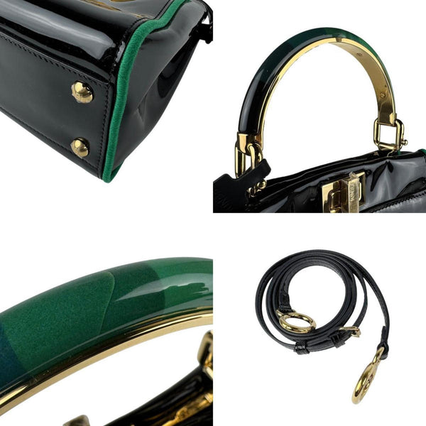 FENDI Handbag Shoulder Bag Mini Peekaboo Iconic Enamel Black x Green Women\'s 8BN316-AA37 z5668