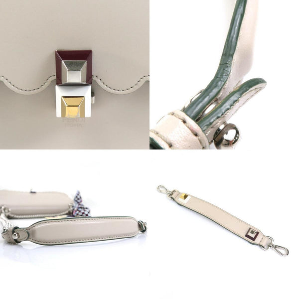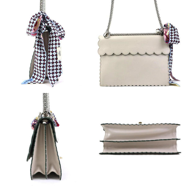 FENDI handbag shoulder bag scarf muffler Canai leather silk light gray silver women\'s 8BT283 OZC e60116a