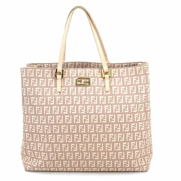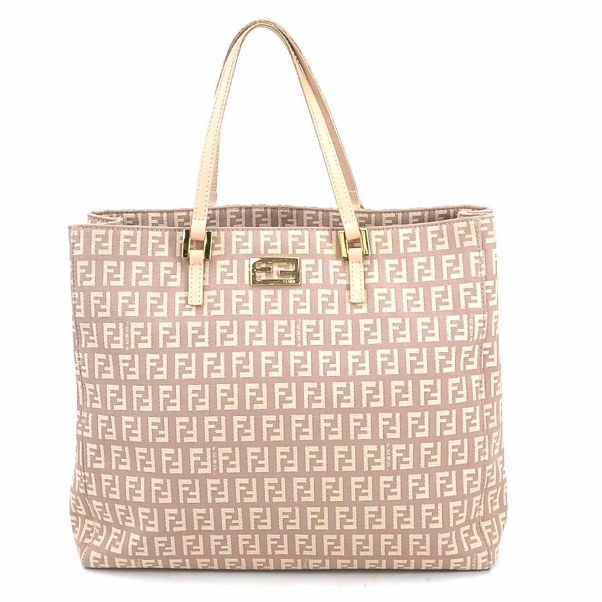 FENDI Handbag Zucchino Canvas Leather Pink Beige Women\'s 2111.8BH133 e60473a