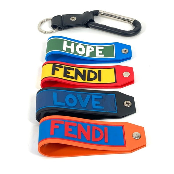 FENDI Logo Bag Charm with Carabiner Keychain Rubber Men Women Multicolor