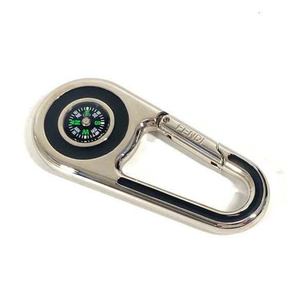 FENDI Logo Carabiner with Compass Bag Charm Keychain Metal Men\'s Women\'s Silver