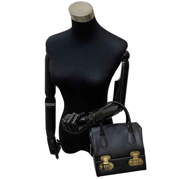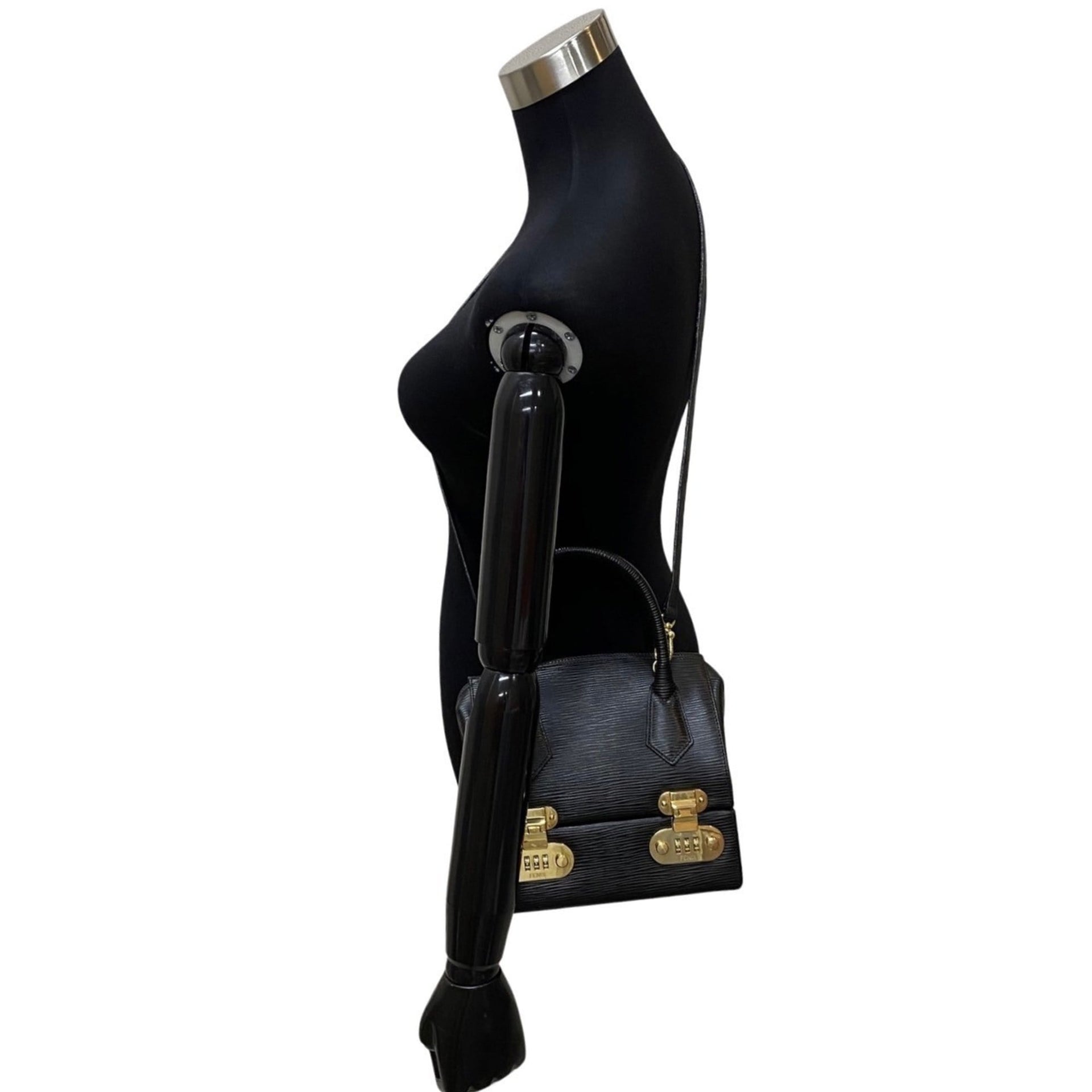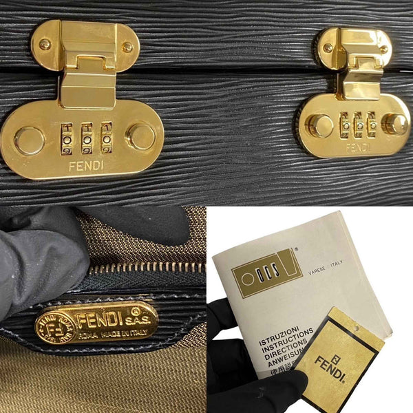 FENDI Logo Metal Fittings Epi Leather Genuine 2way Handbag Vanity Bag Makeup Box Shoulder Black 25747