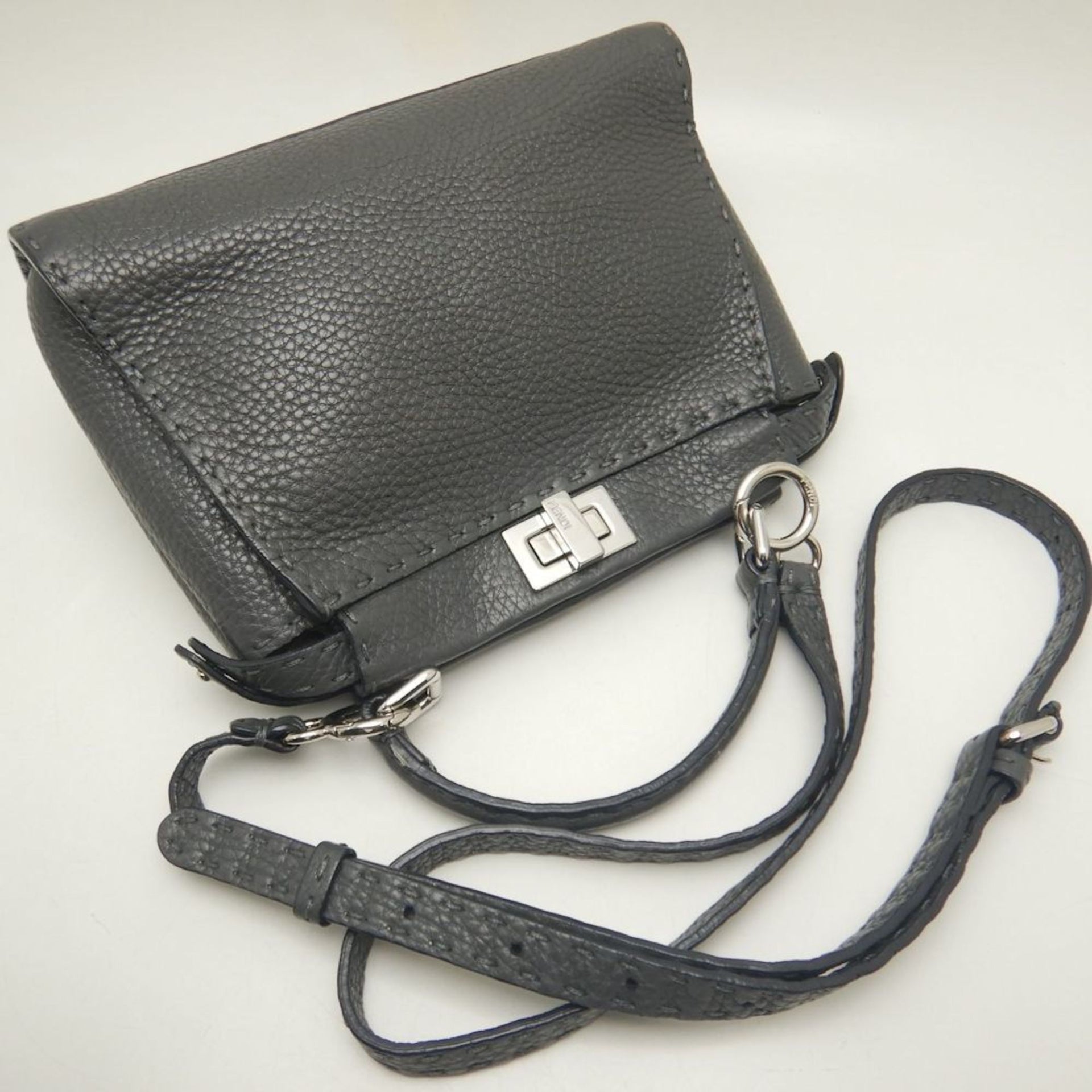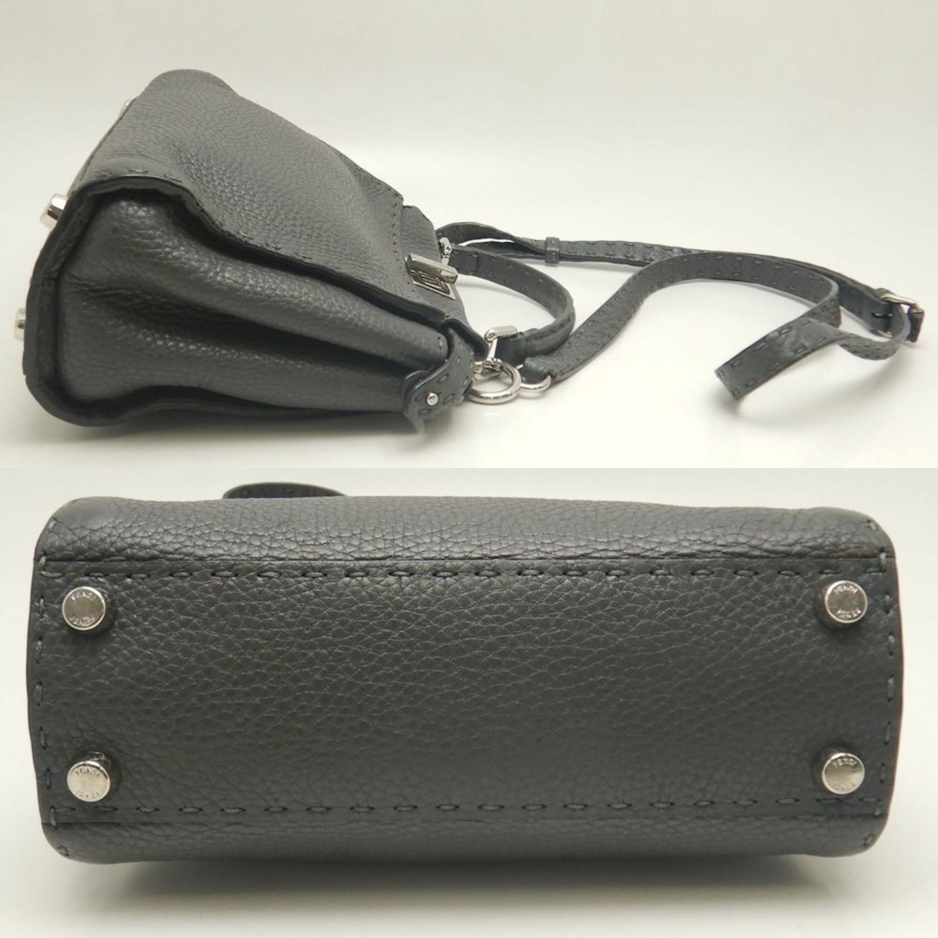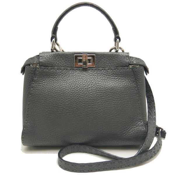 FENDI Mini Peekaboo Selleria 8BN244 Handbag in Grey Leather, Women\'s, 253303
