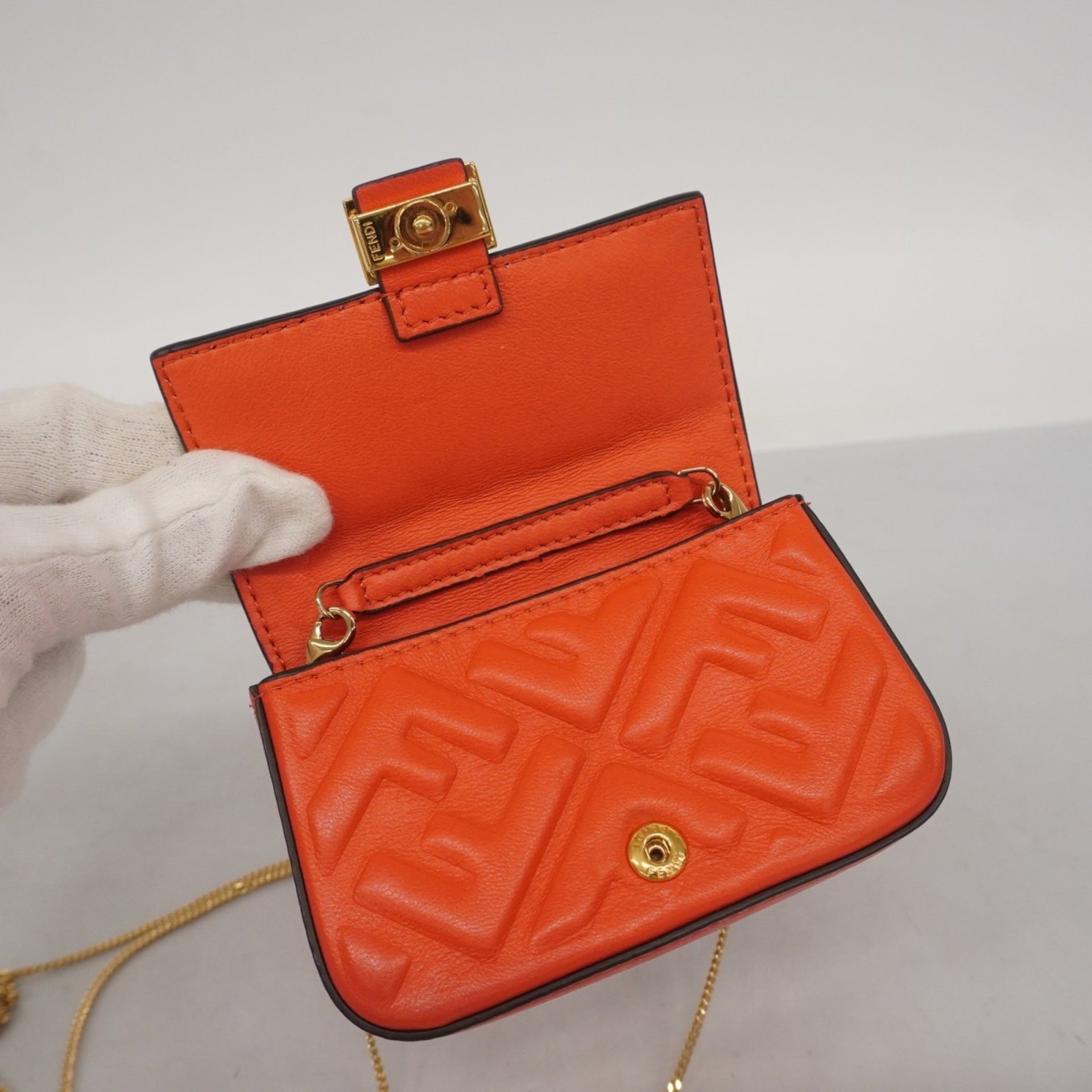 Fendi Nano Bucket Leather Shoulder Bag, Orange, Women\'s