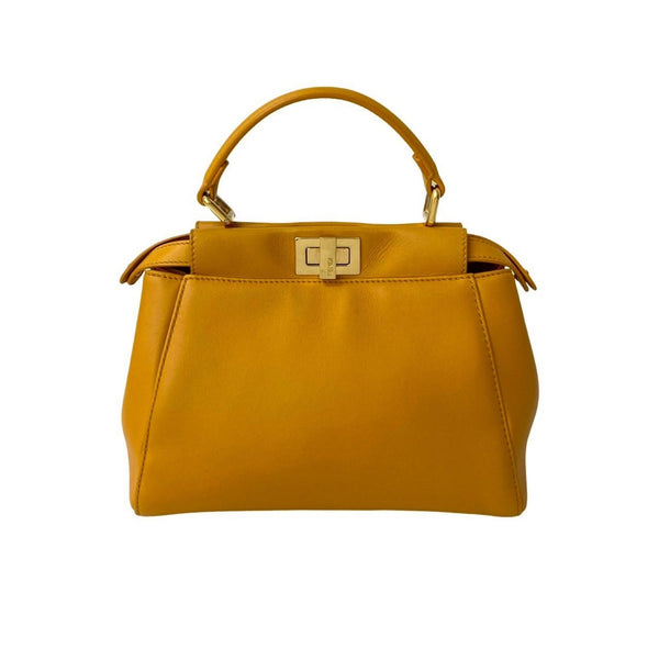 FENDI Peekaboo Mini Logo Hardware Leather Genuine 2-Way Shoulder Bag/Handbag Yellow Camel 41414