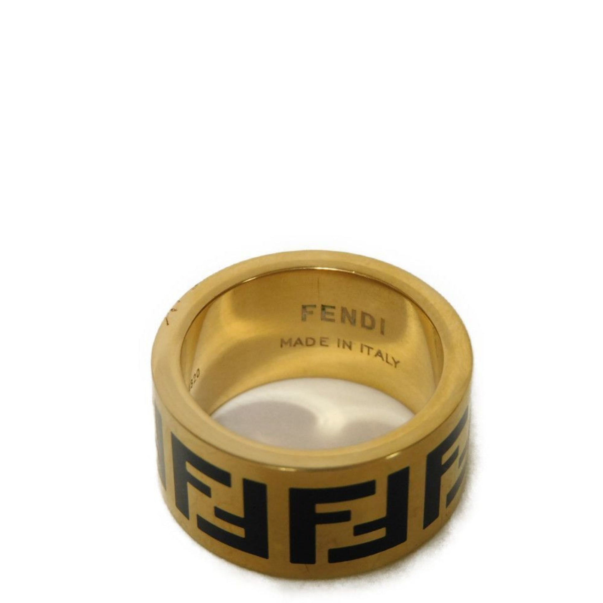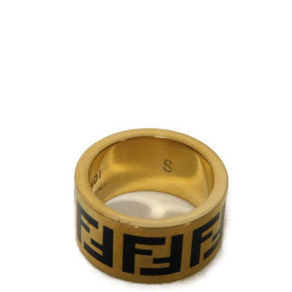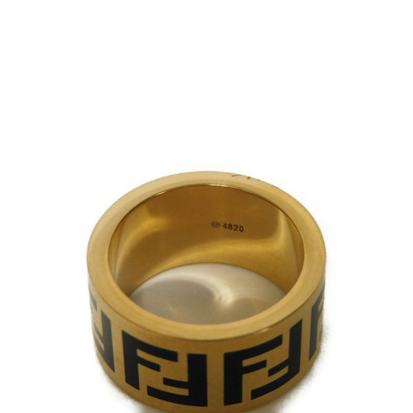 FENDI Ring Forever FF Enamel Black S Size 11 Brass Gold 8AG945 TL9 F0RNG Women\'s