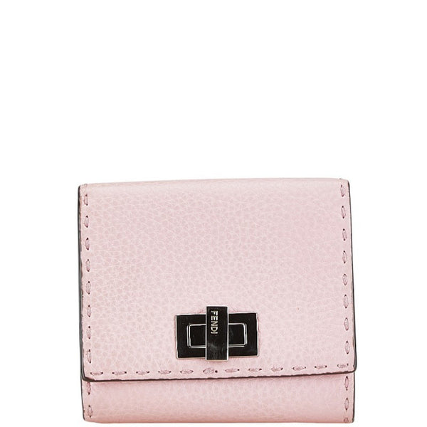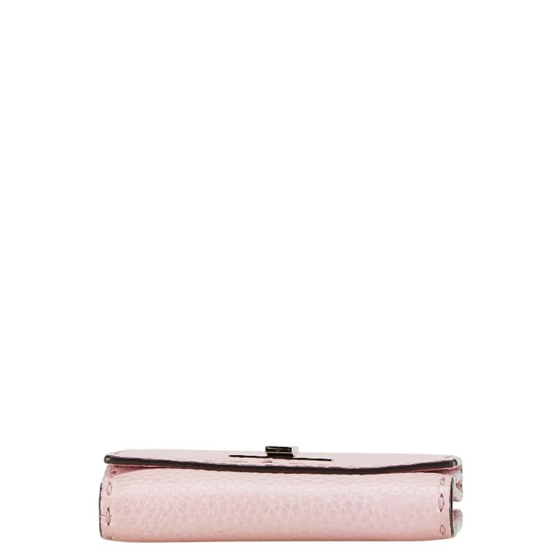 FENDI Selleria Peekaboo Bi-fold Wallet Pink Leather Women\'s