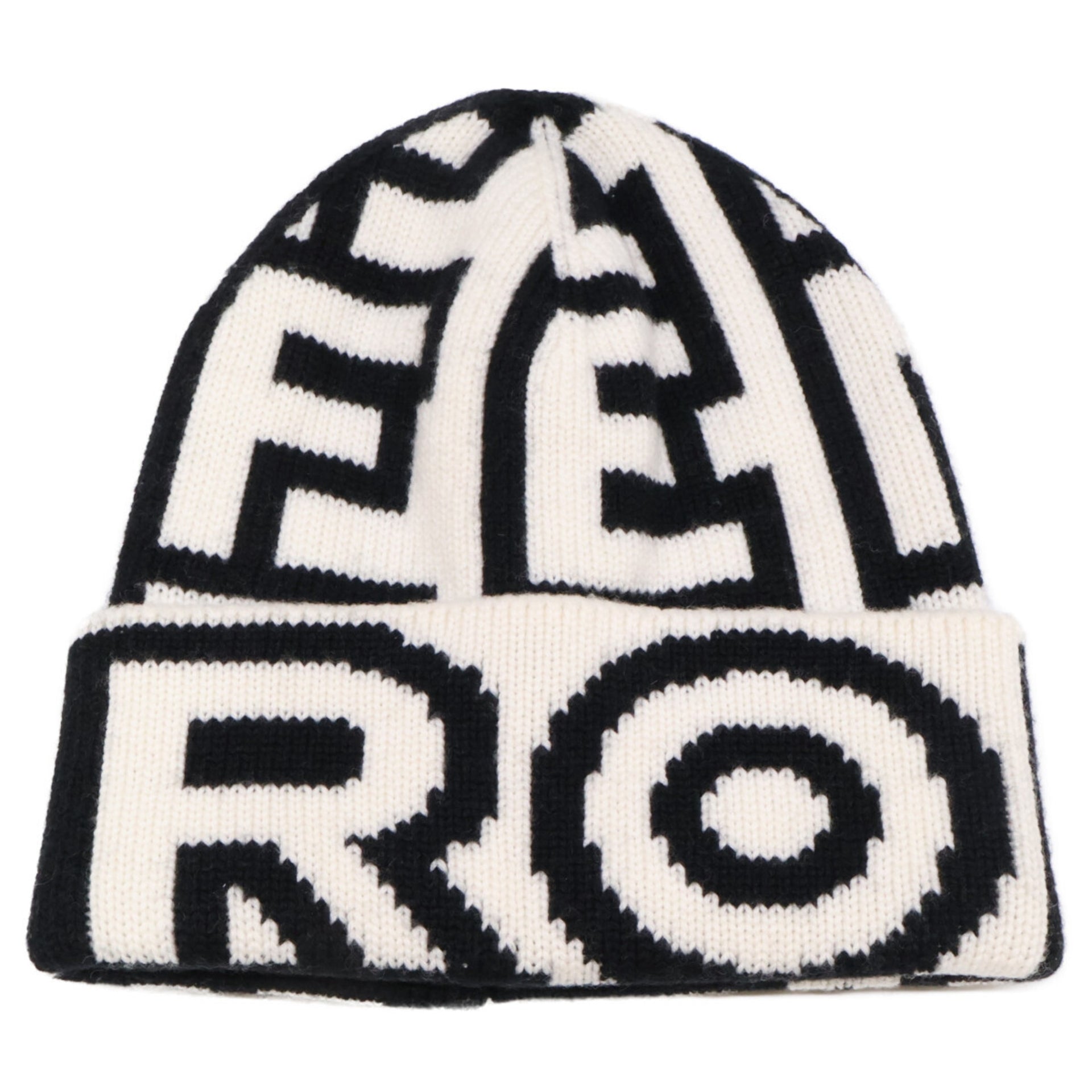 FENDI x MARC JACOBS FXQ950 Logo Beanie Knit Hat, Sizes S and M, Black White, Women\'s