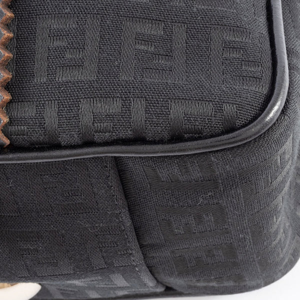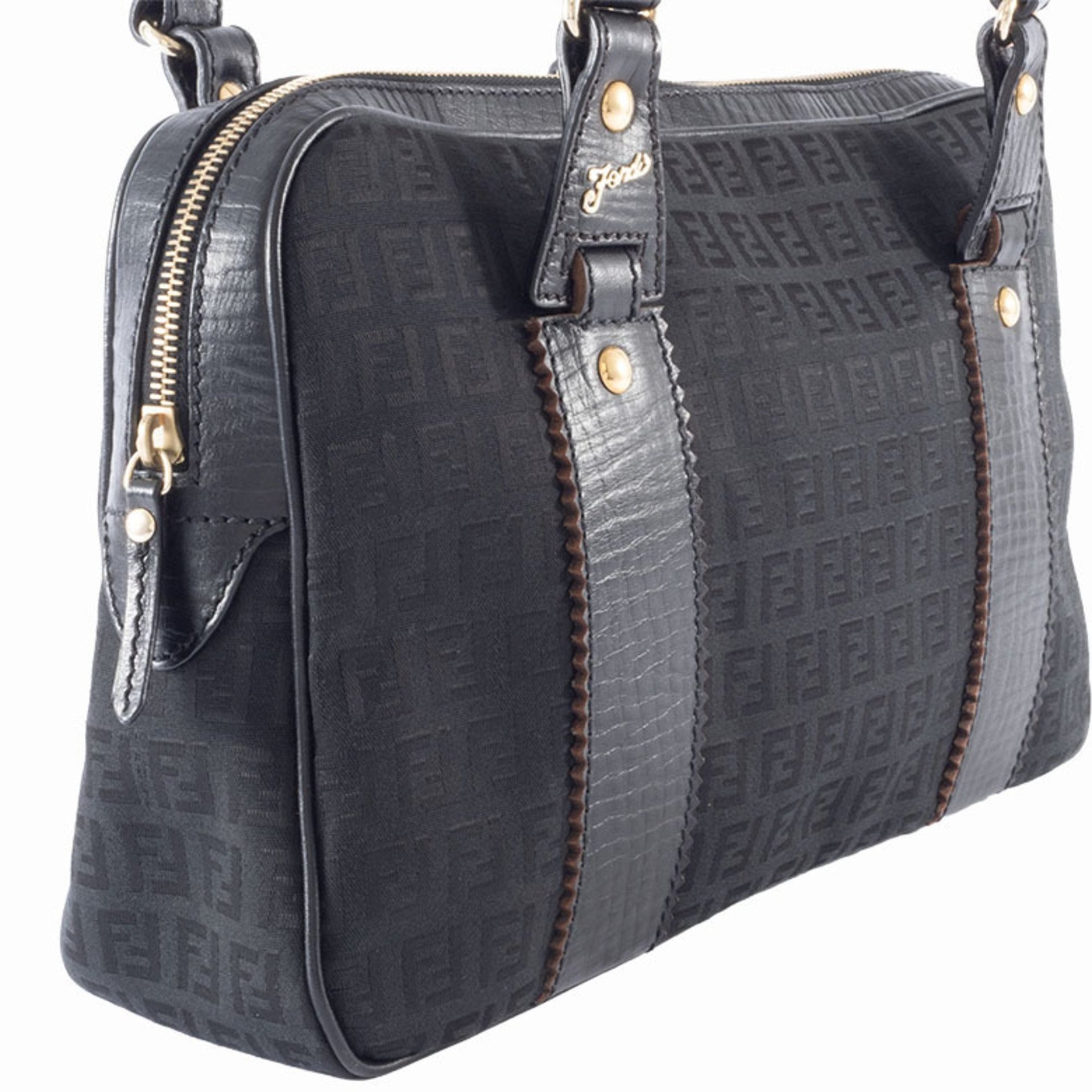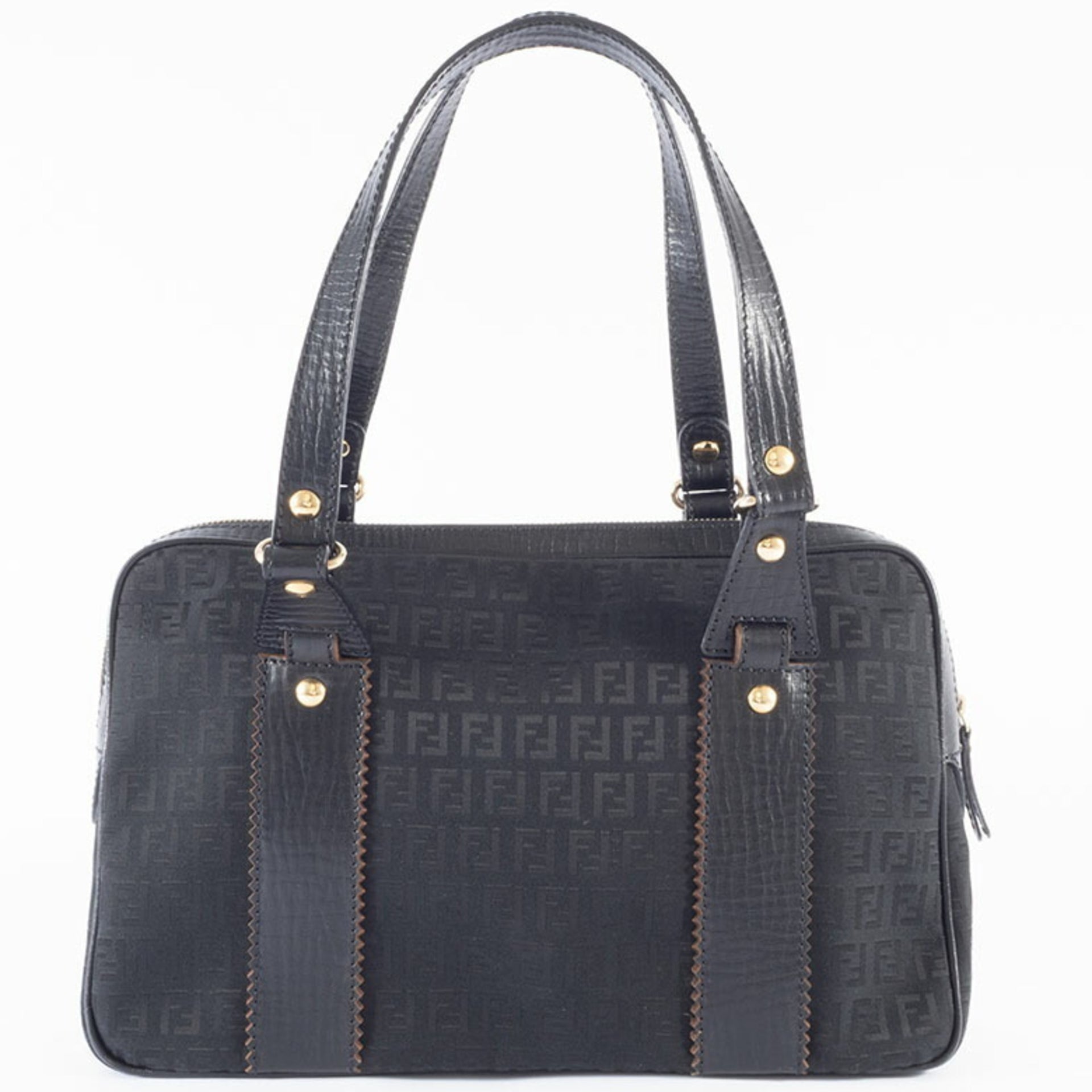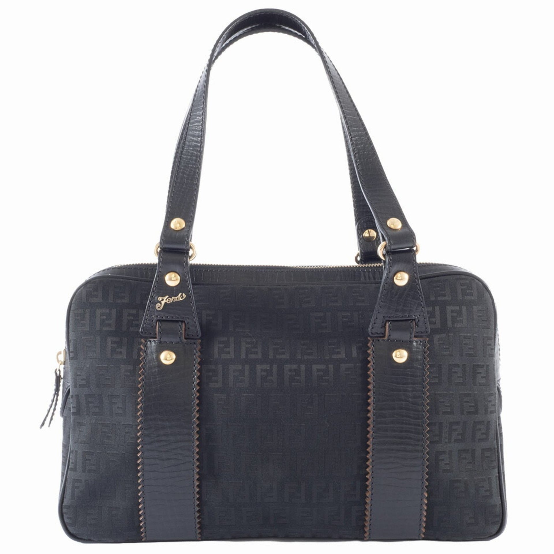 FENDI Zucca Canvas Handbag 8BN161 Leather Black Women\'s Boston Zucchino