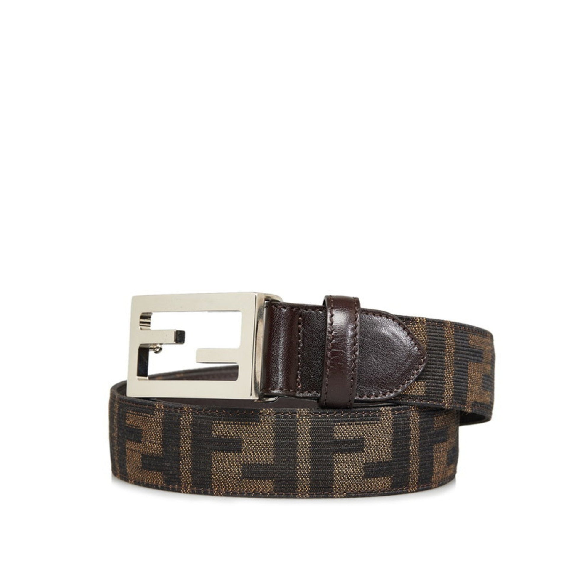 FENDI ZUCCA FF BUCKLE BELT 42 BROWN CANVAS LEATHER WOMEN\'S