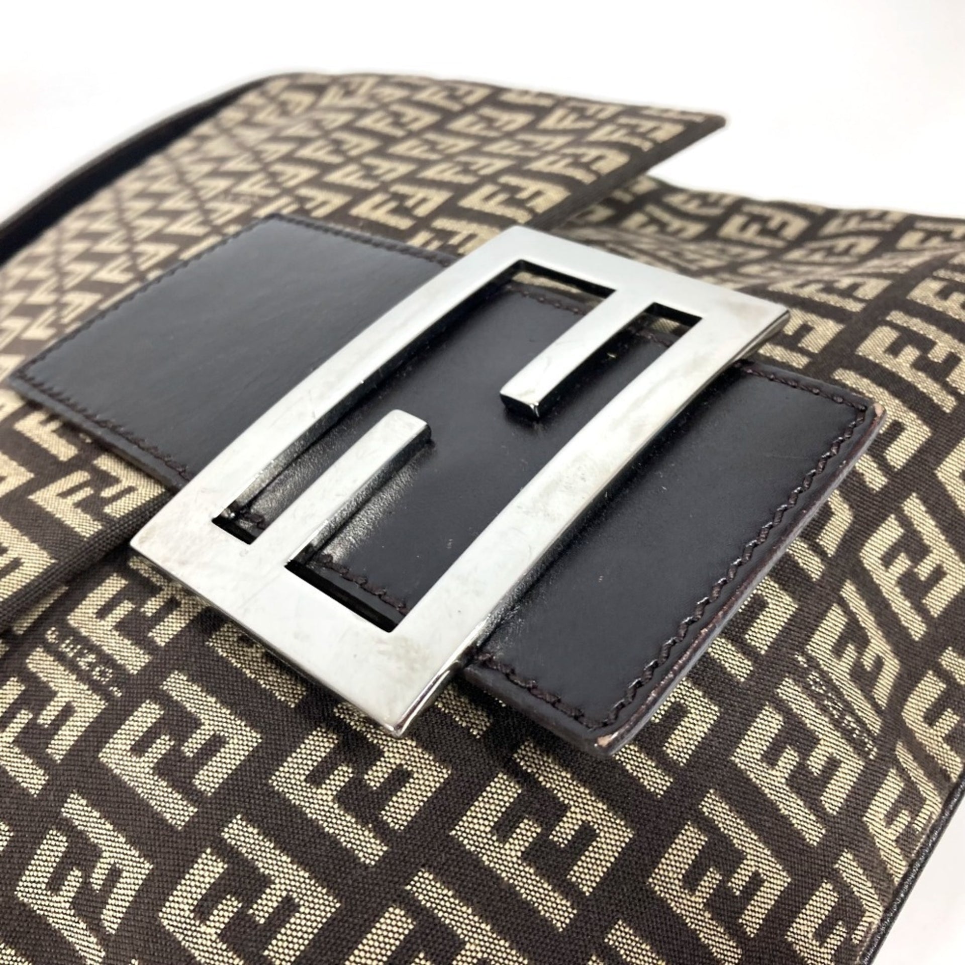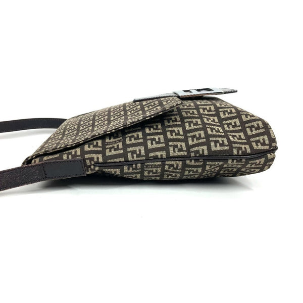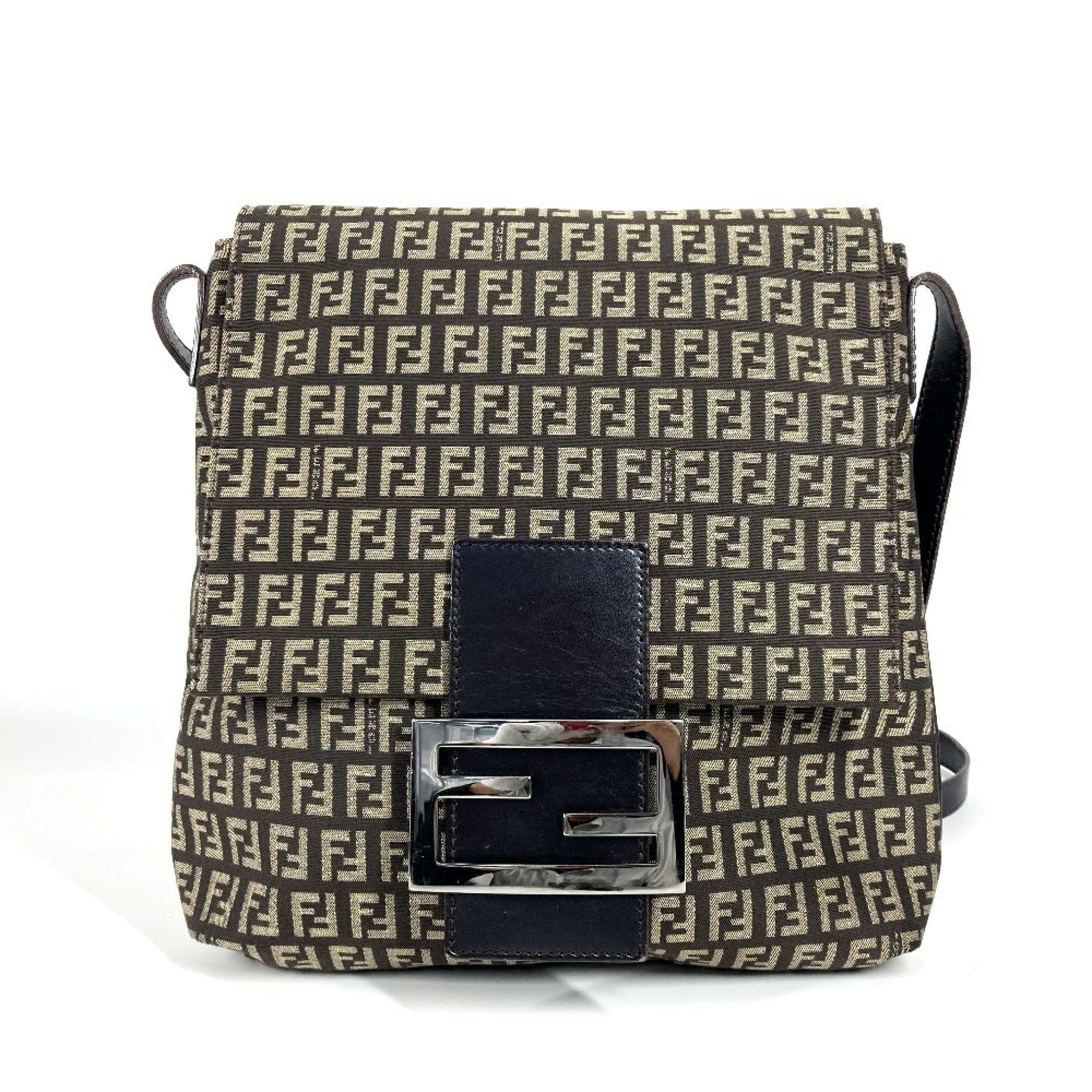 FENDI Zucca FF logo Zucchino bag flap crossbody pochette shoulder leather canvas ladies brown