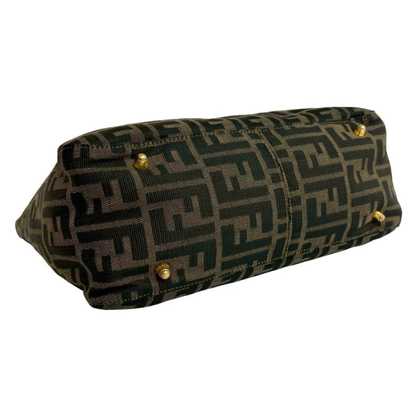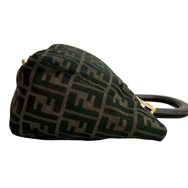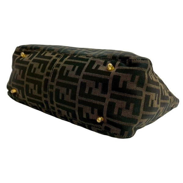 FENDI Zucca FF pattern logo metal hardware canvas and leather handbag mini tote bag brown black 19151