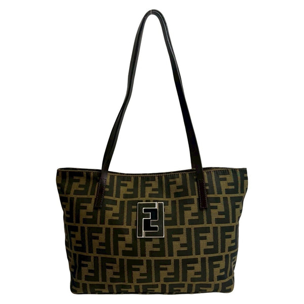 FENDI Zucca Logo Canvas and Leather Mini Tote Bag, Brown Khaki, 56287