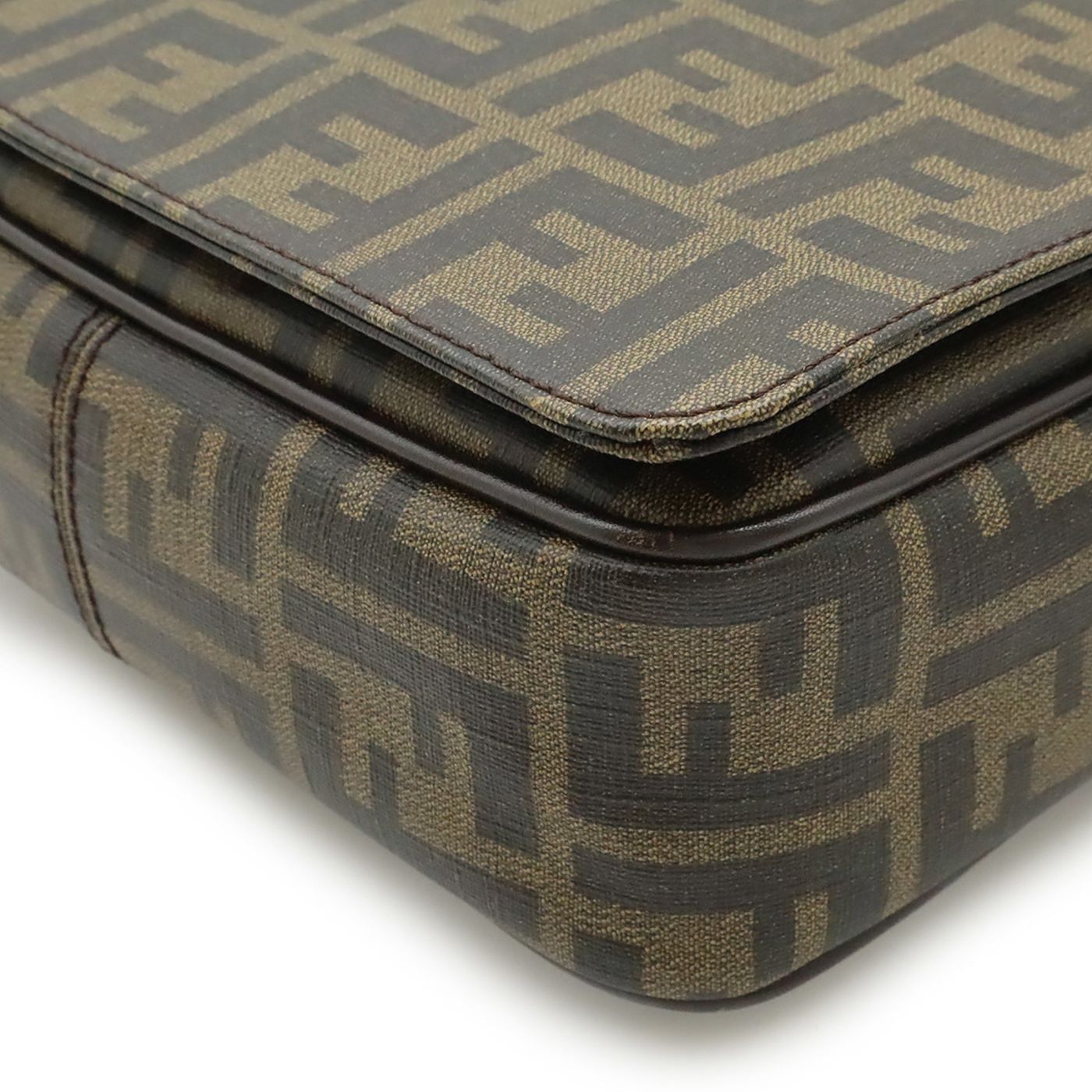 FENDI Zucca pattern shoulder bag in PVC and leather, khaki brown dark brown, 7VA215