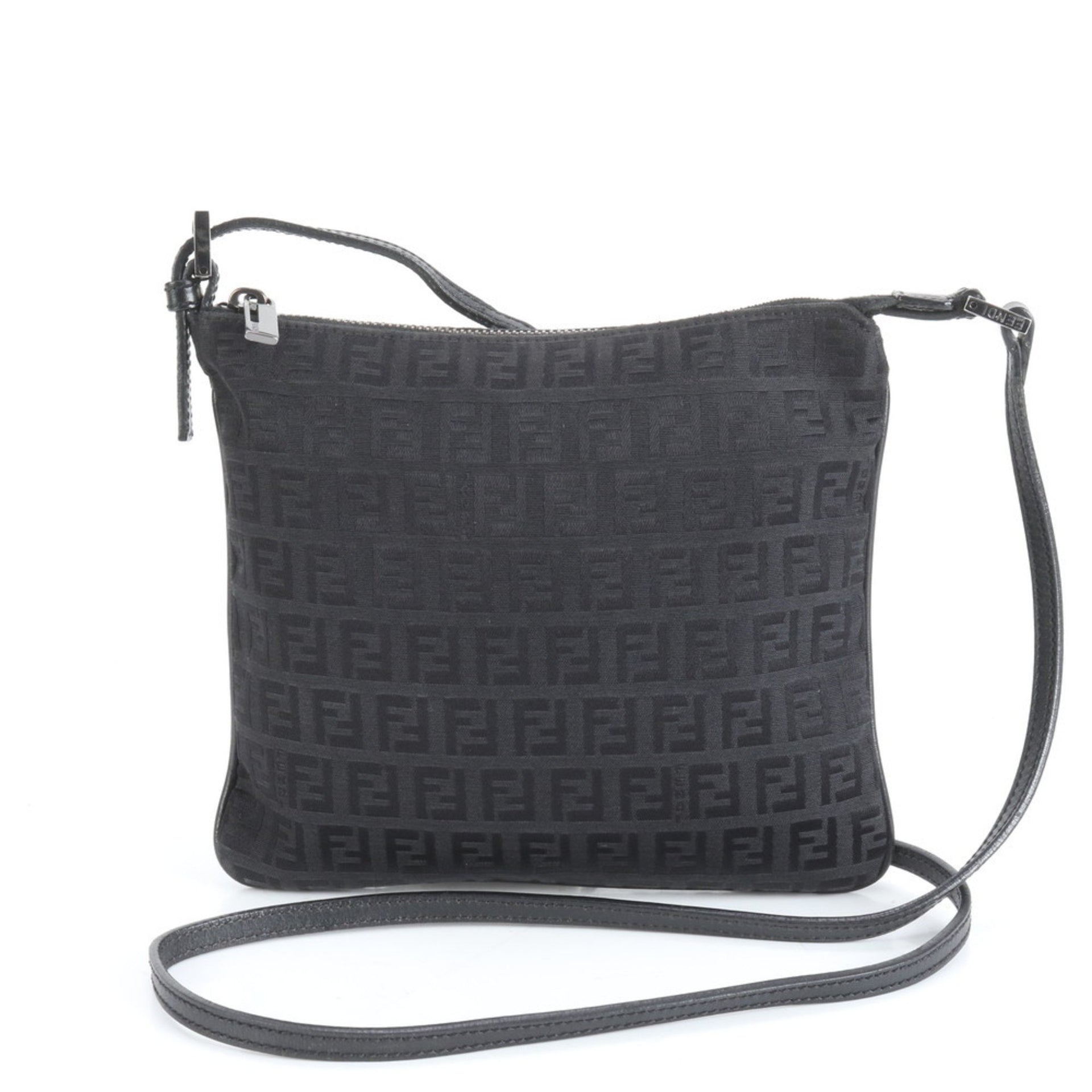 Fendi Zucchino 8BT047 Leather Shoulder Bag, Crossbody Black, Women\'s