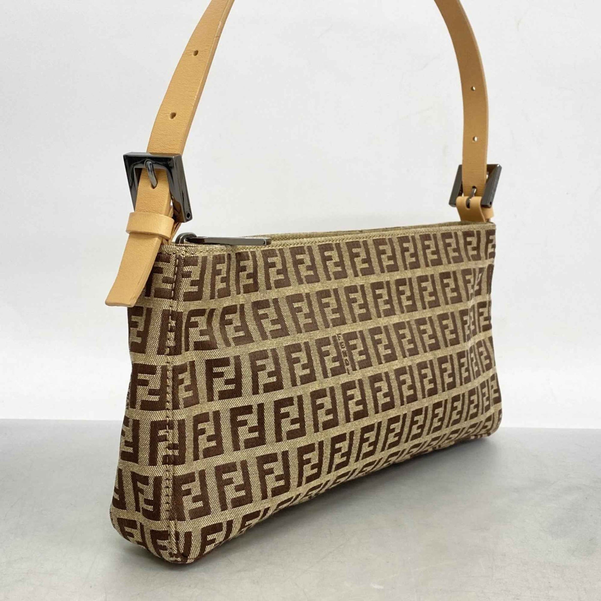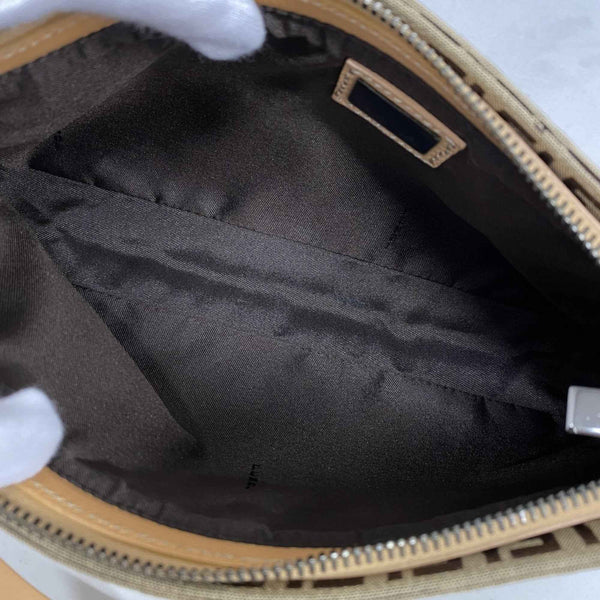 Fendi Zucchino handbag in nylon canvas, beige and brown, for women