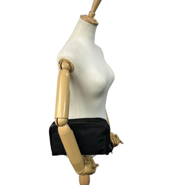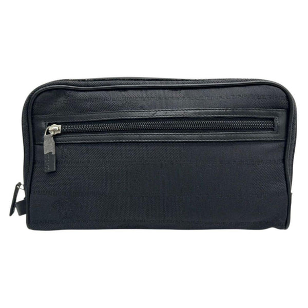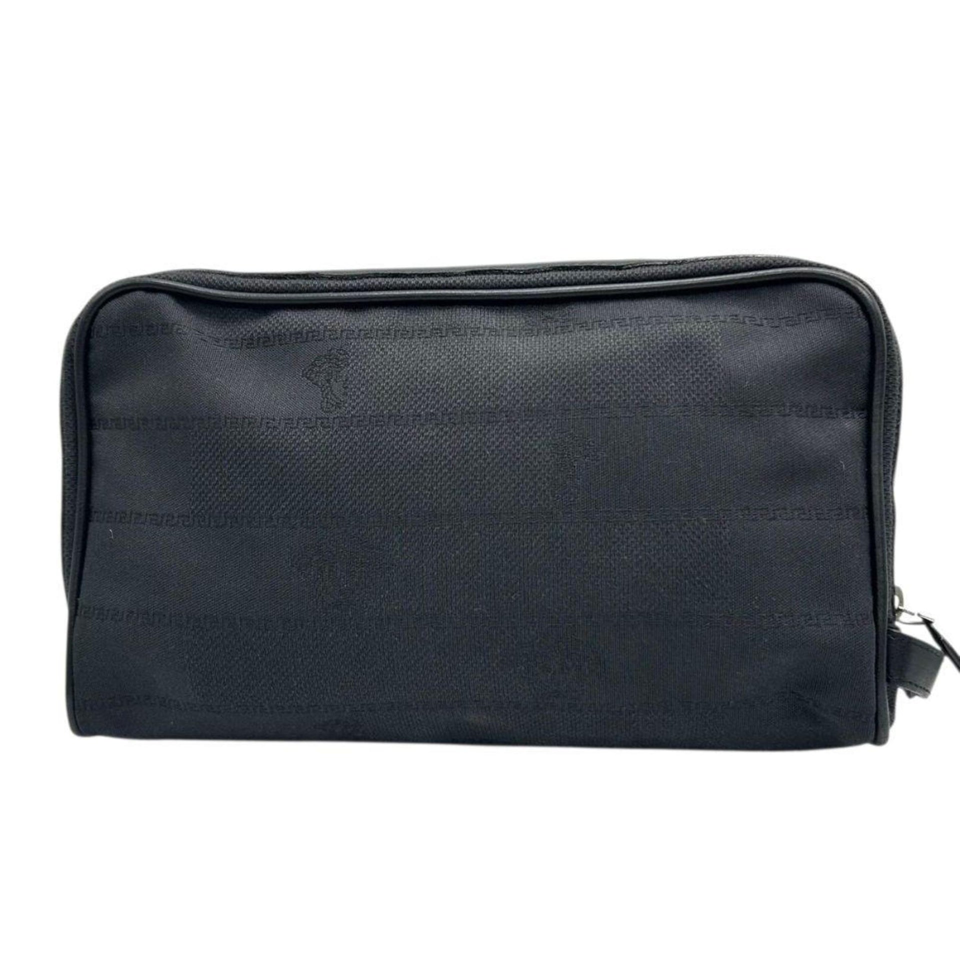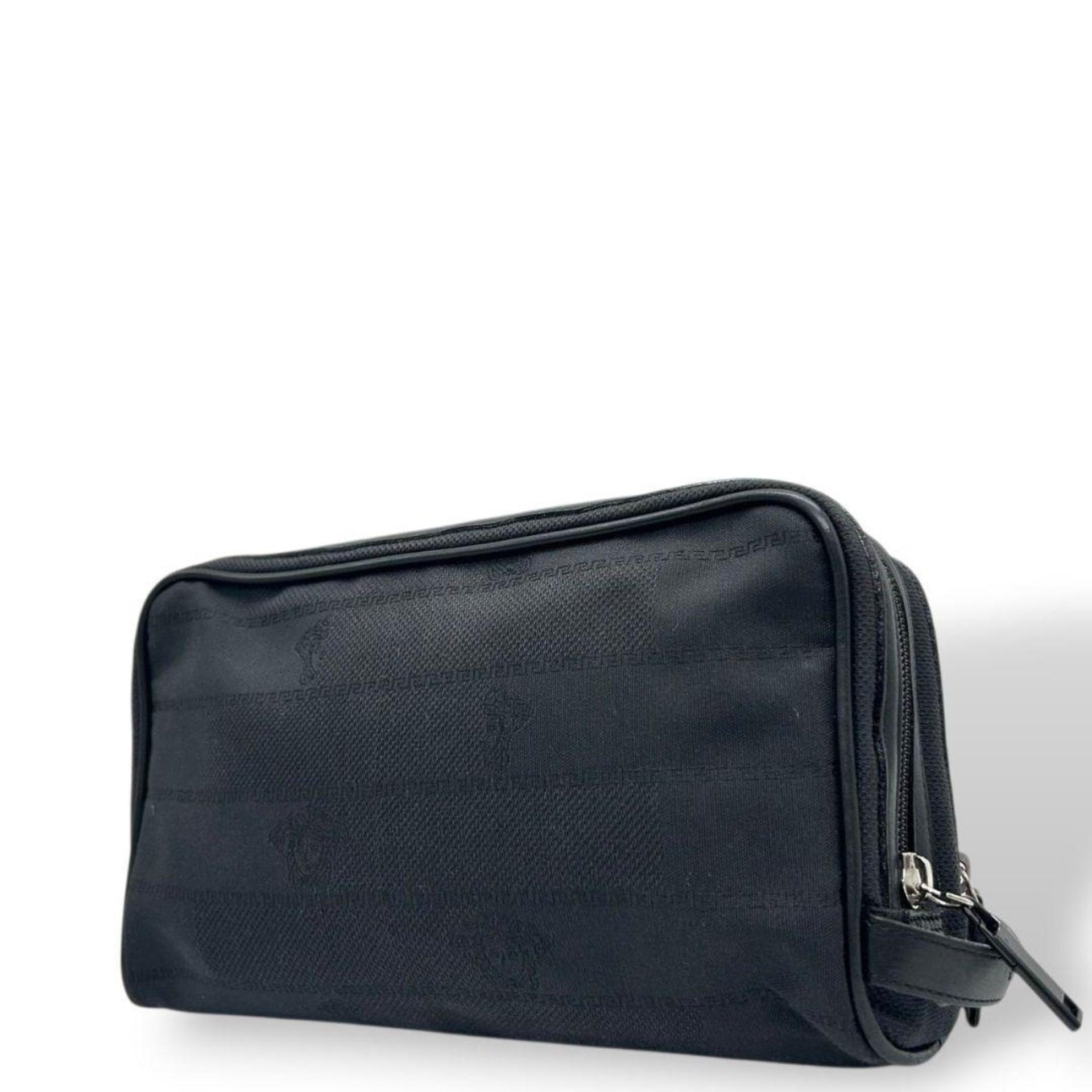 GIANNI VERSACE Gianni Versace clutch bag in black with a Medusa print and nylon logo, silver hardware, brand logo.