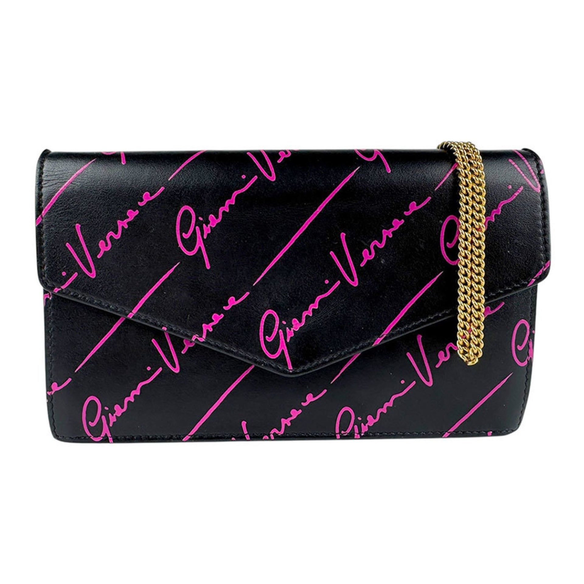 Gianni Versace Women\'s Chain Wallet, Leather, Black and Pink, Z6237