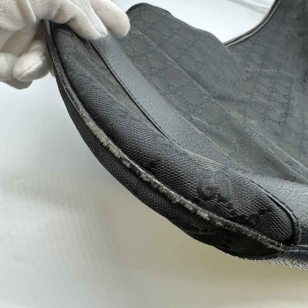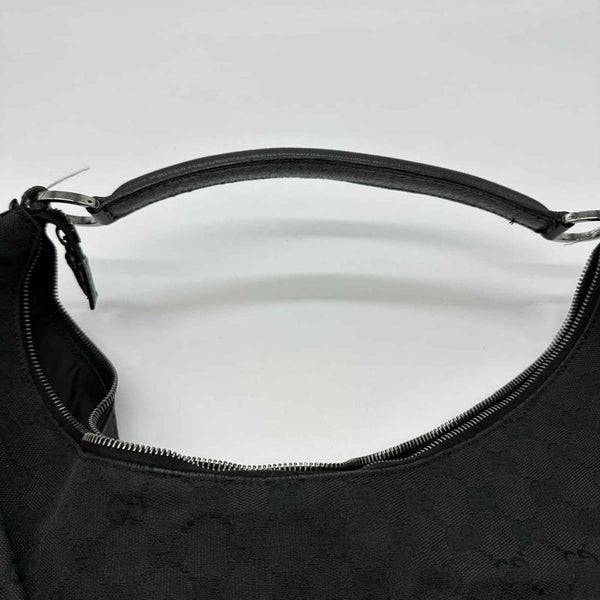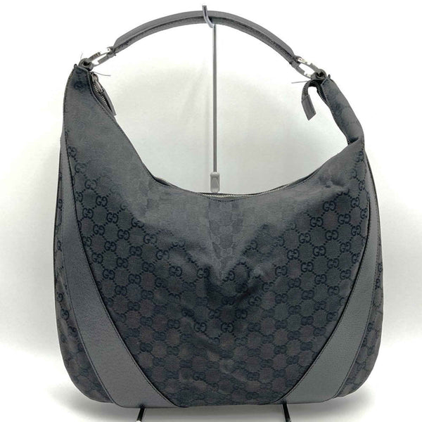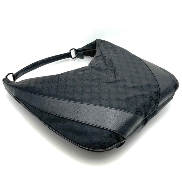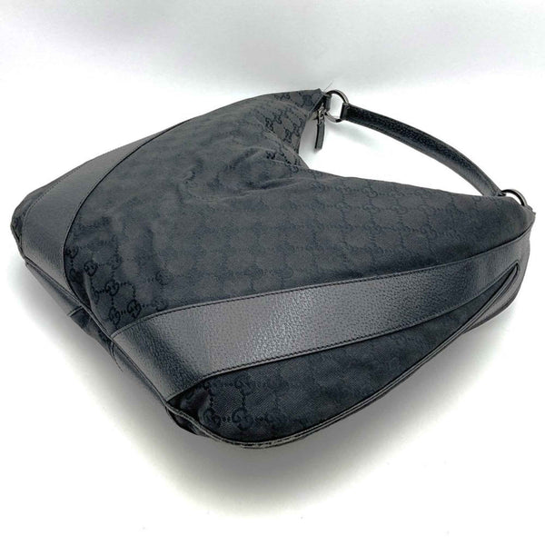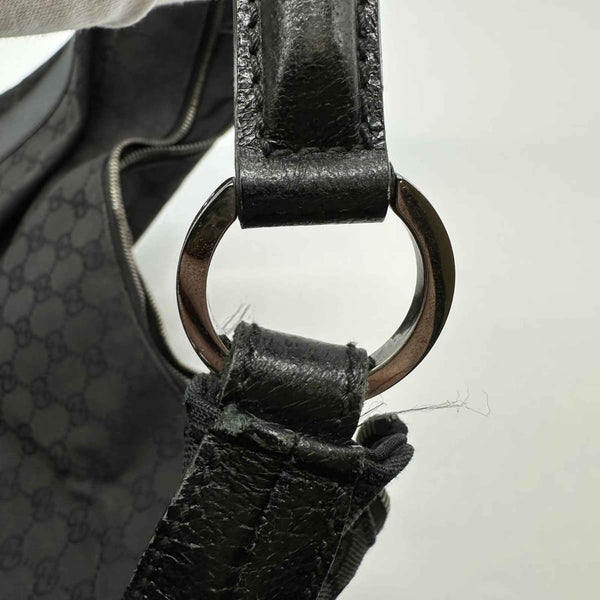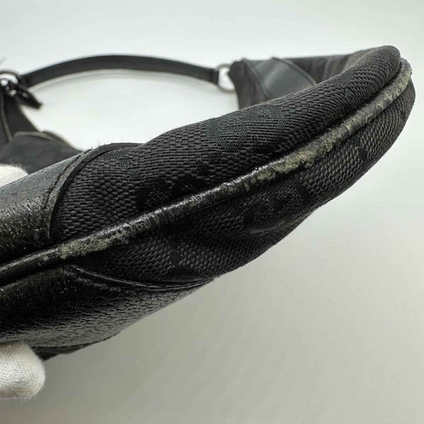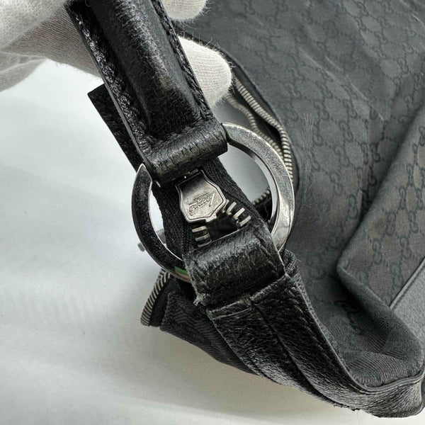 GUCCI 124358 GG Canvas Shoulder Bag in Black Leather for Men and Women