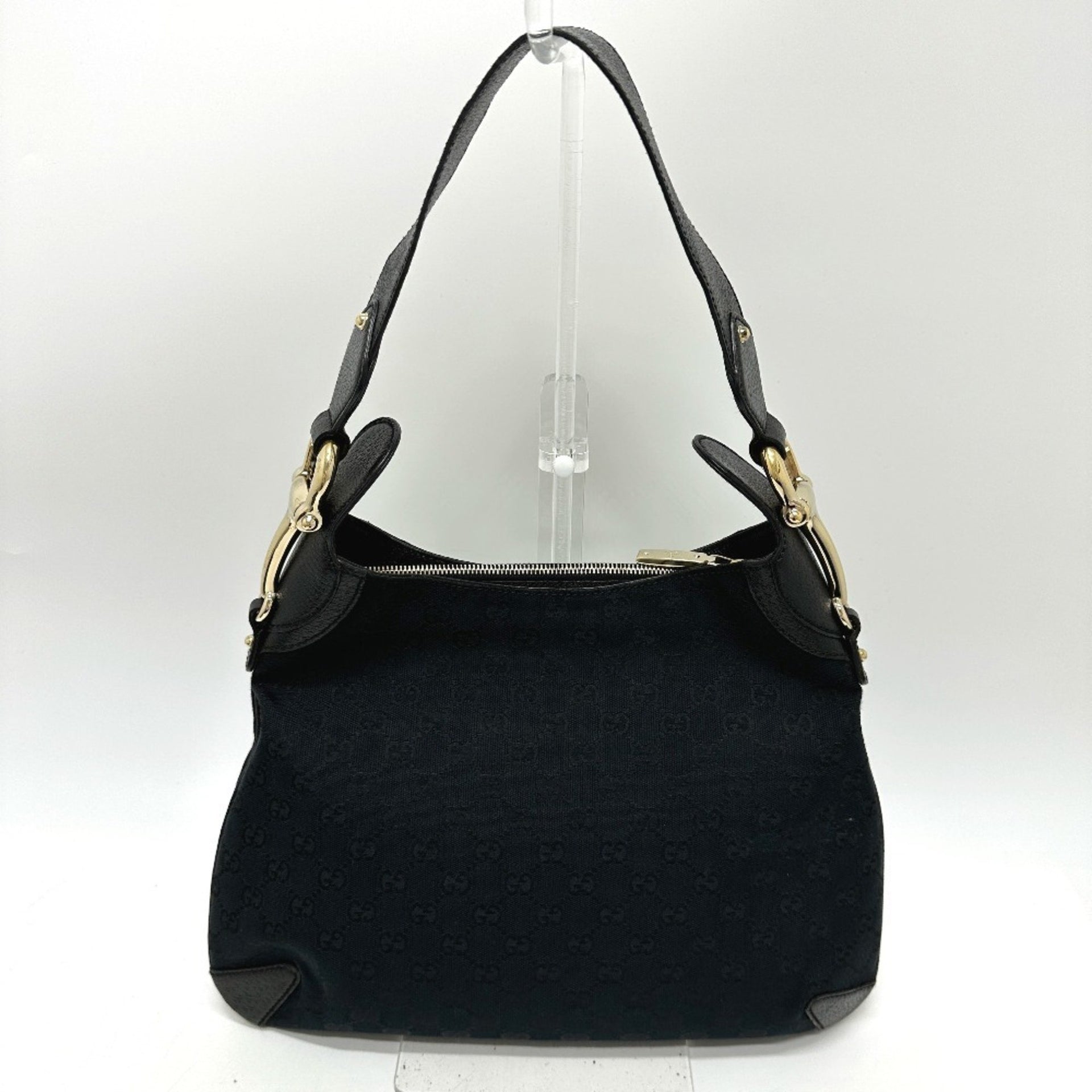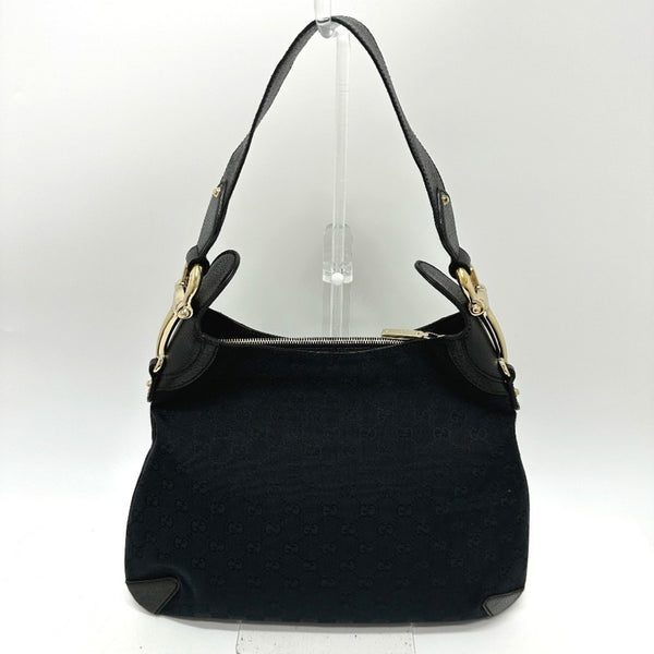 GUCCI 145826 GG Horsebit Shoulder Bag/Handbag in Canvas/Leather, Black