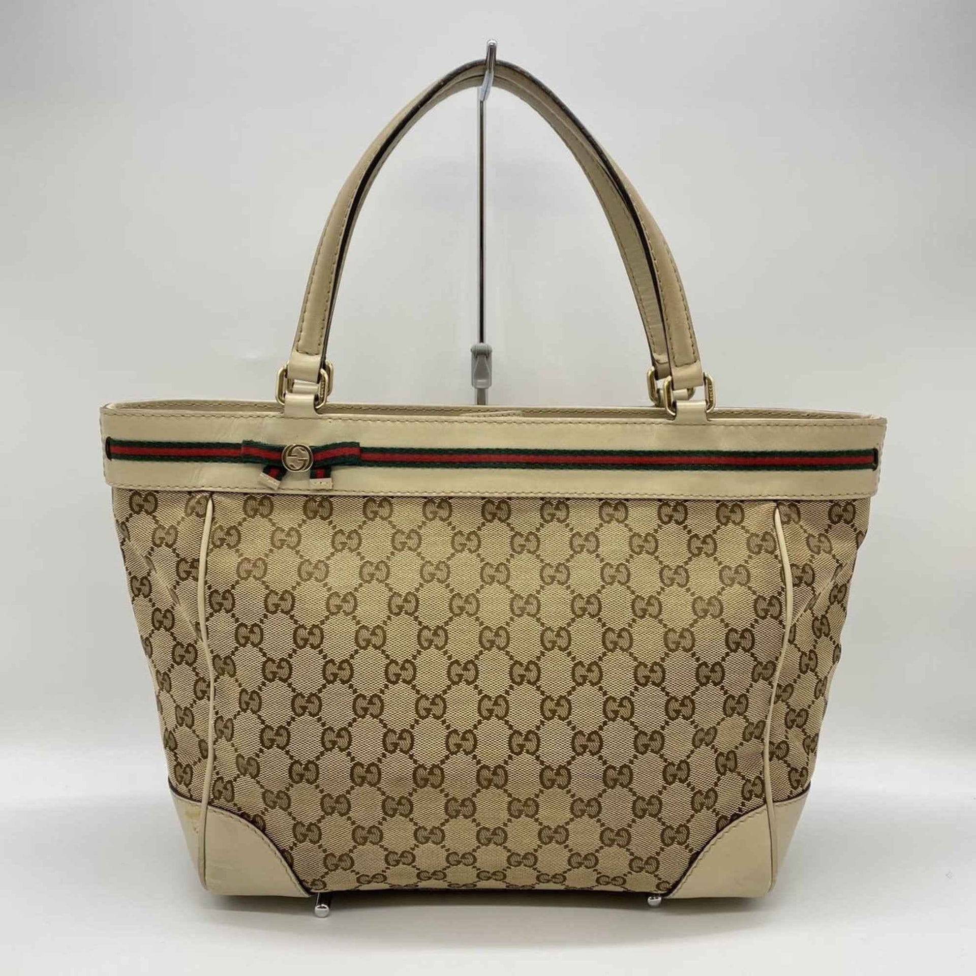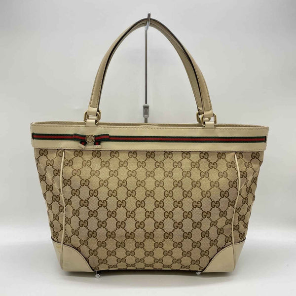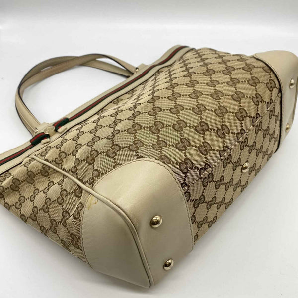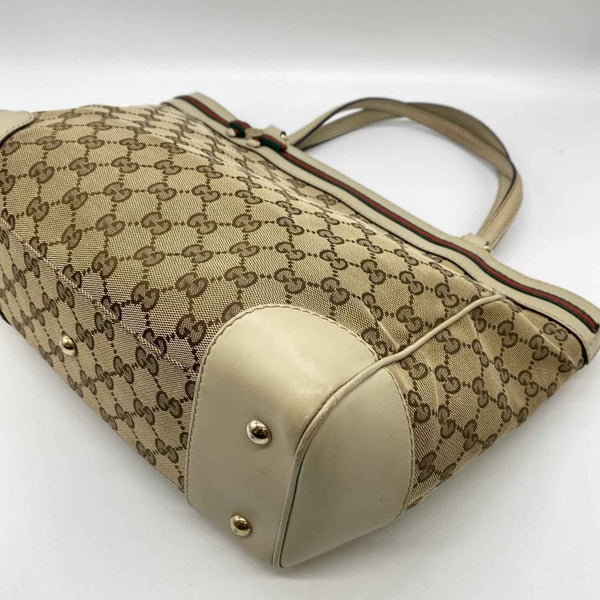 GUCCI 257061 Tote Bag/Handbag in GG Canvas and Sherry Leather (Beige) for Men Women