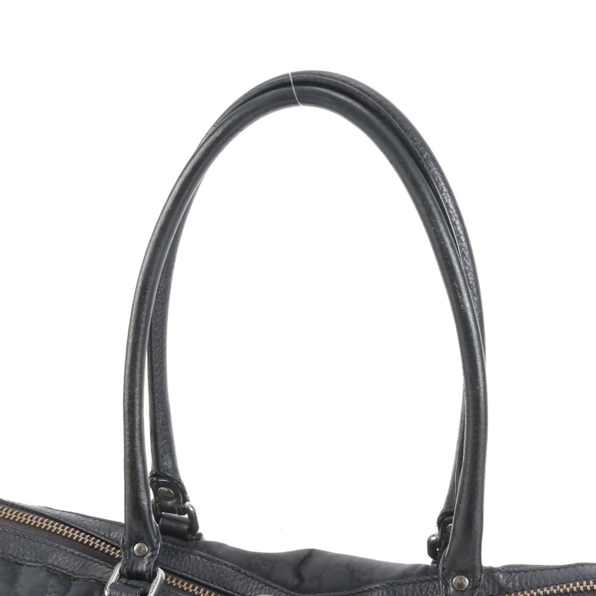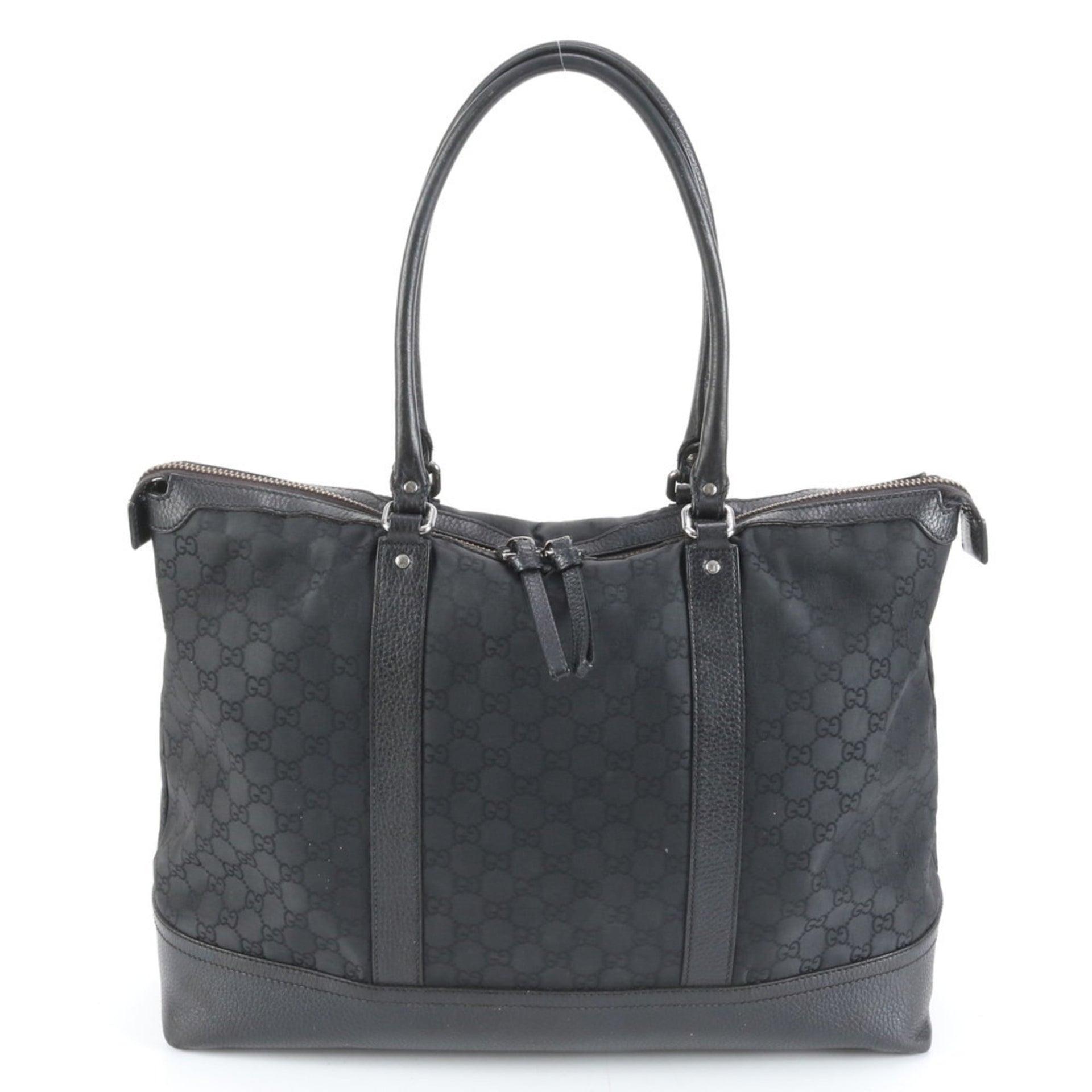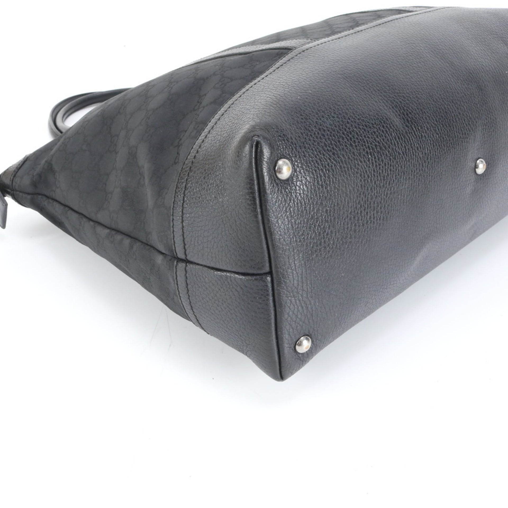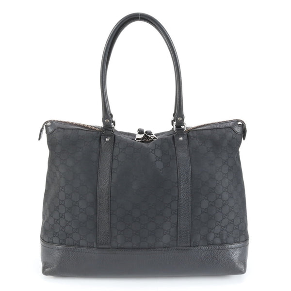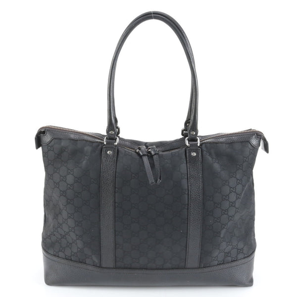 Gucci 327793 Leather GG Nylon Tote Bag Shoulder Handbag Black Women\'s