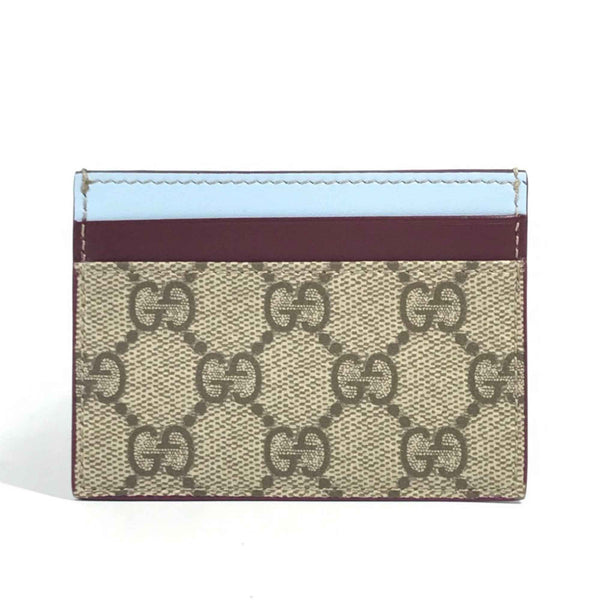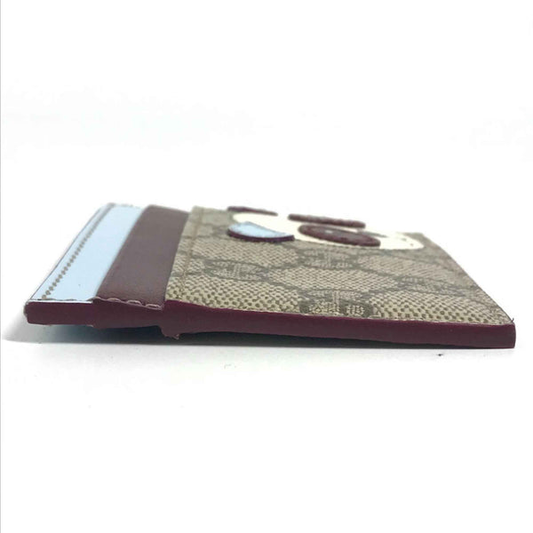 GUCCI 818769 GG Supreme Logo Panda Business Card Case/Pass Case, Canvas and Leather, Men\'s/Women\'s, Beige, Like New