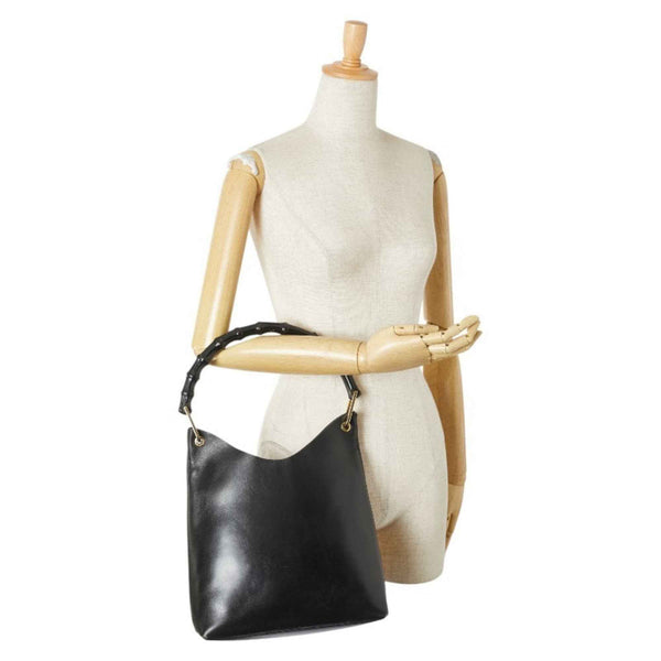 Gucci Bamboo Handbag 001 2058 Black Leather Women\'s GUCCI