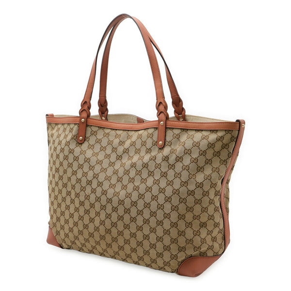 GUCCI CRAFT Tote Bag, Large Shoulder Canvas and Leather, Beige Pink, 247207
