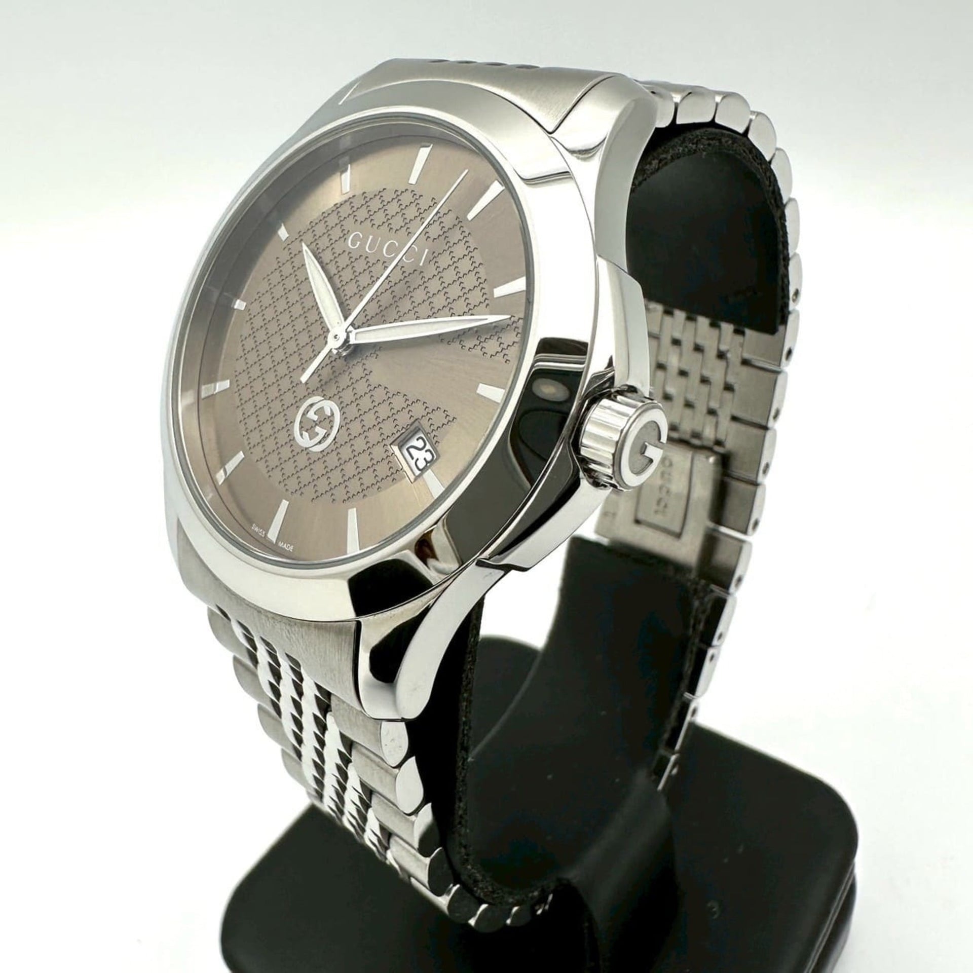 GUCCI G-Timeless YA1264107/126.4 Men\'s Watch with Date, Stainless Steel, Quartz Movement, Brown